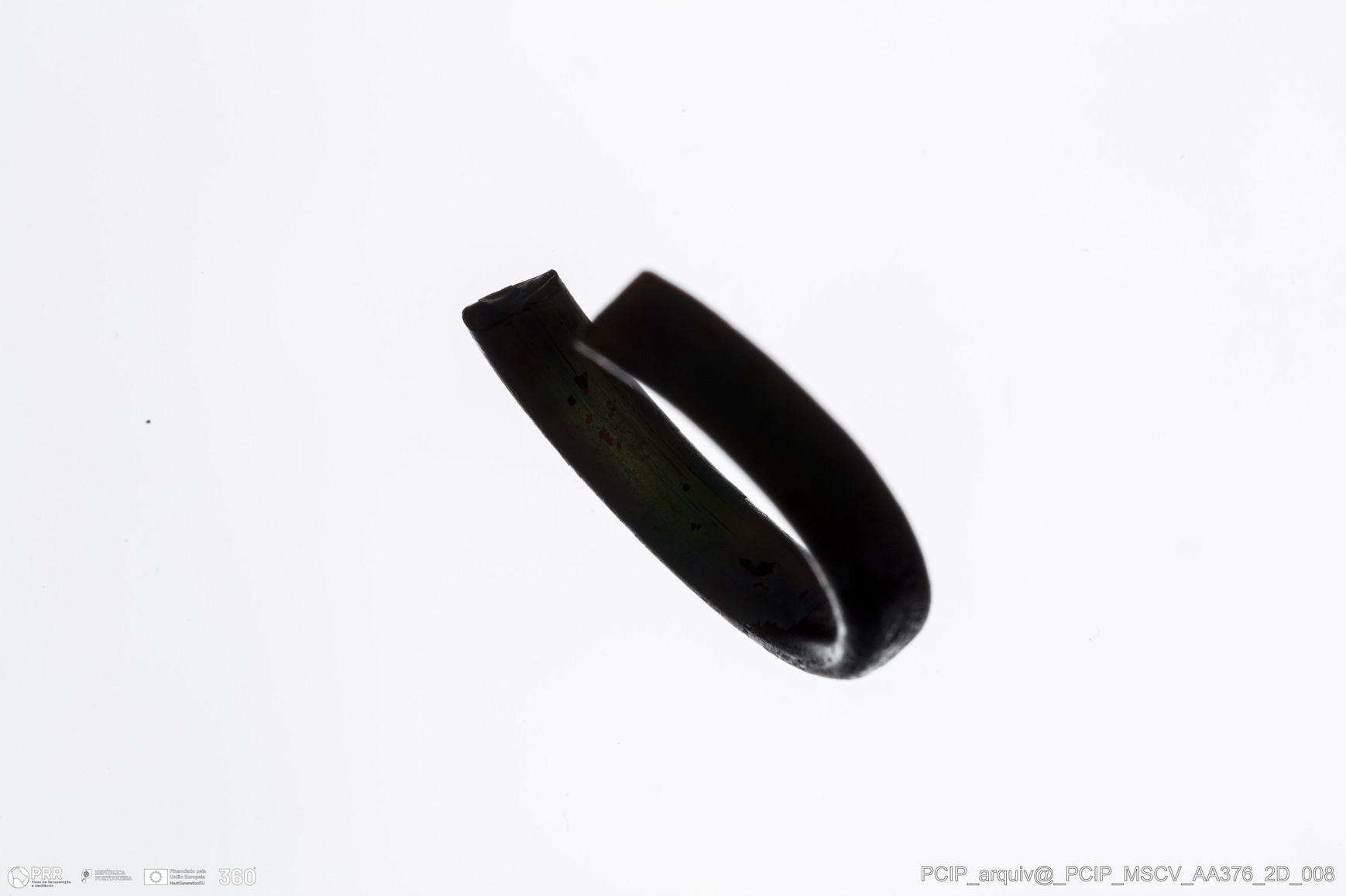Matéria/Técnica: Vidro; Cronologia: Século XVI- XVII; Autoria: Desconhecida; Dimensões: Diâmetro máximo: 23mm; Altura: 4mm; Espessura: 2mm.