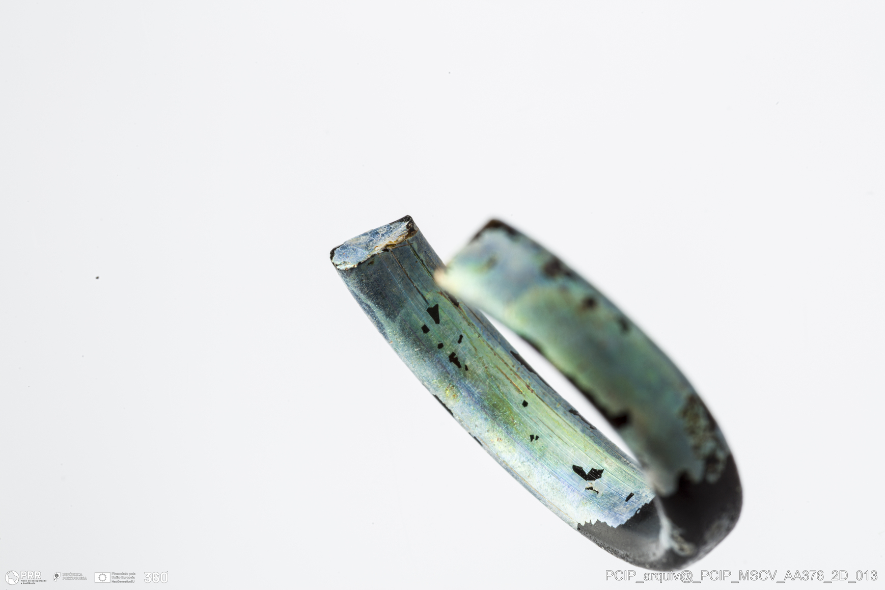 Matéria/Técnica: Vidro; Cronologia: Século XVI- XVII; Autoria: Desconhecida; Dimensões: Diâmetro máximo: 23mm; Altura: 4mm; Espessura: 2mm.
