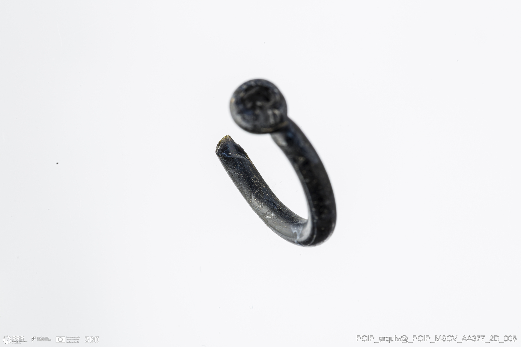 Matéria/Técnica: Vidro; Cronologia: Século XVI- XVII; Autoria: Desconhecida; Dimensões: Diâmetro máximo: 18mm; Altura: 5mm; Espessura: 3mm.