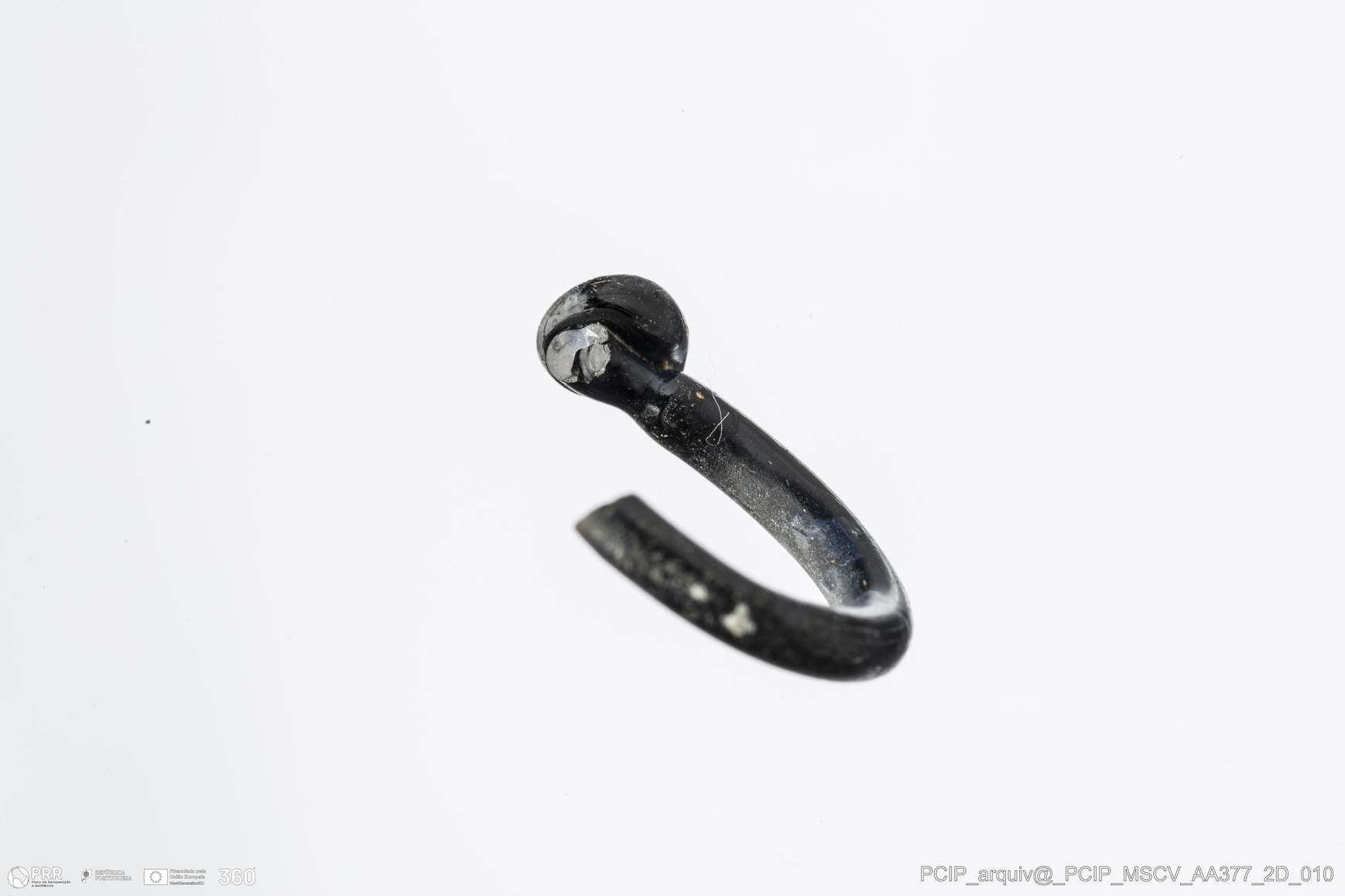 Matéria/Técnica: Vidro; Cronologia: Século XVI- XVII; Autoria: Desconhecida; Dimensões: Diâmetro máximo: 18mm; Altura: 5mm; Espessura: 3mm.