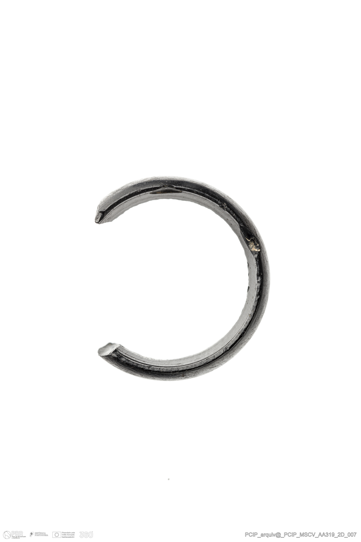 Matéria/Técnica: Azeviche; Cronologia: Século XVI- XVII; Autoria: Desconhecida; Dimensões: Diâmetro máximo: 20mm Altura máxima: 9mm Espessura máxima: 2mm.