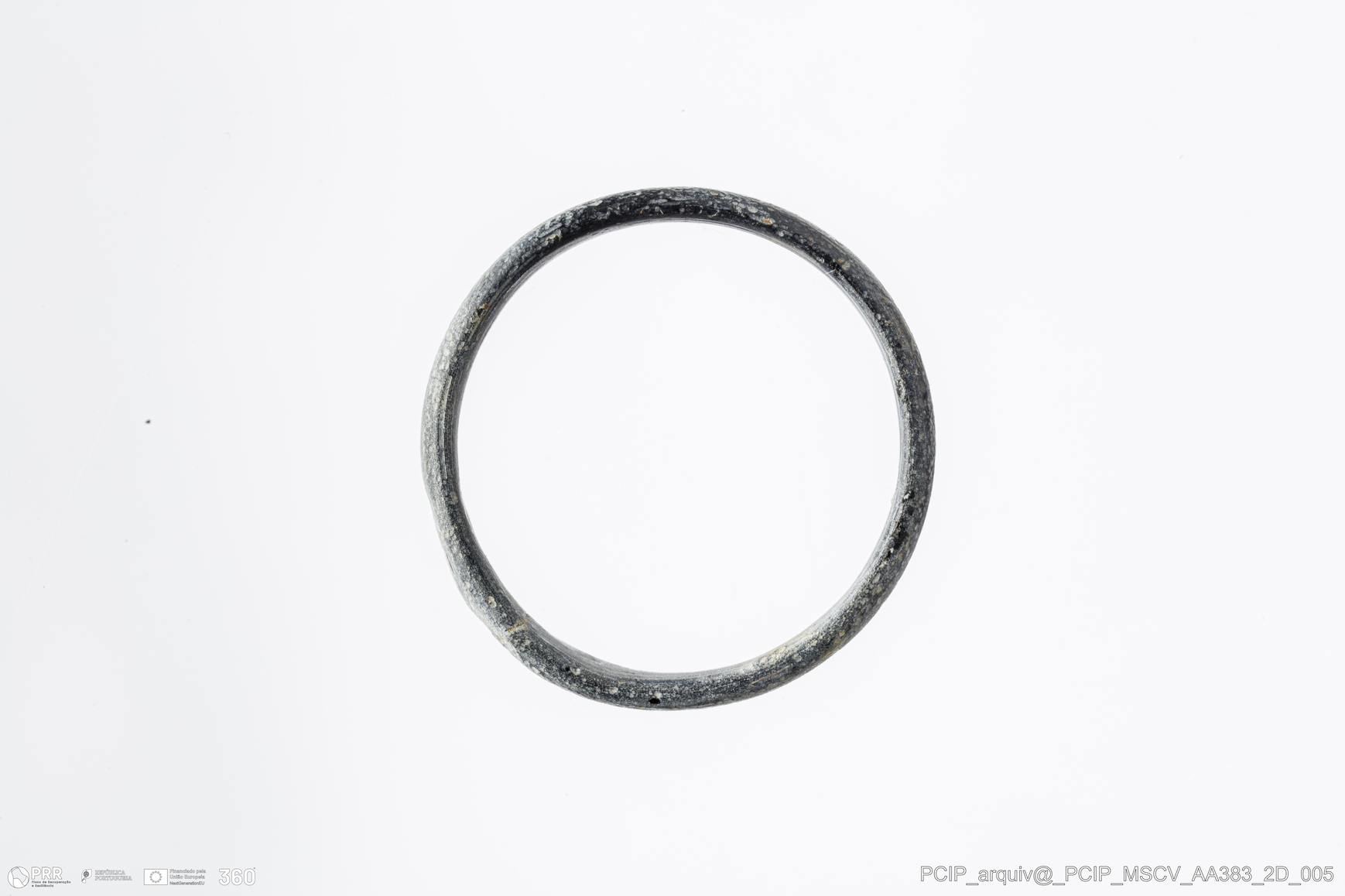 Matéria/Técnica: Vidro; Cronologia: Século XVI- XVII; Autoria: Desconhecida; Dimensões: Diâmetro: 19mm; Espessura: 4mm.