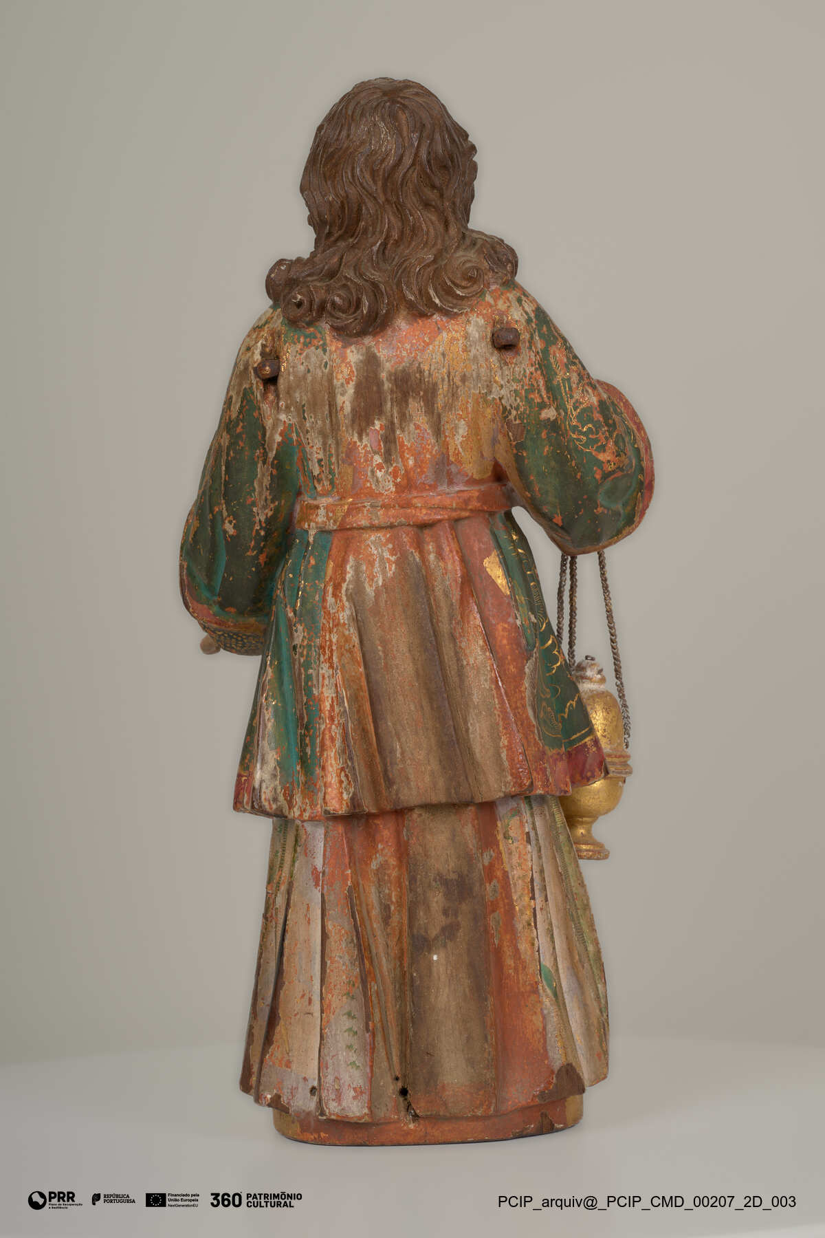 Matéria/Técnica: Desconhecida; Cronologia: XVII; Autoria: Desconhecida; Dimensões: Altura: 42 cm; Largura: 21 cm; Profundidade: 12,5 cm.