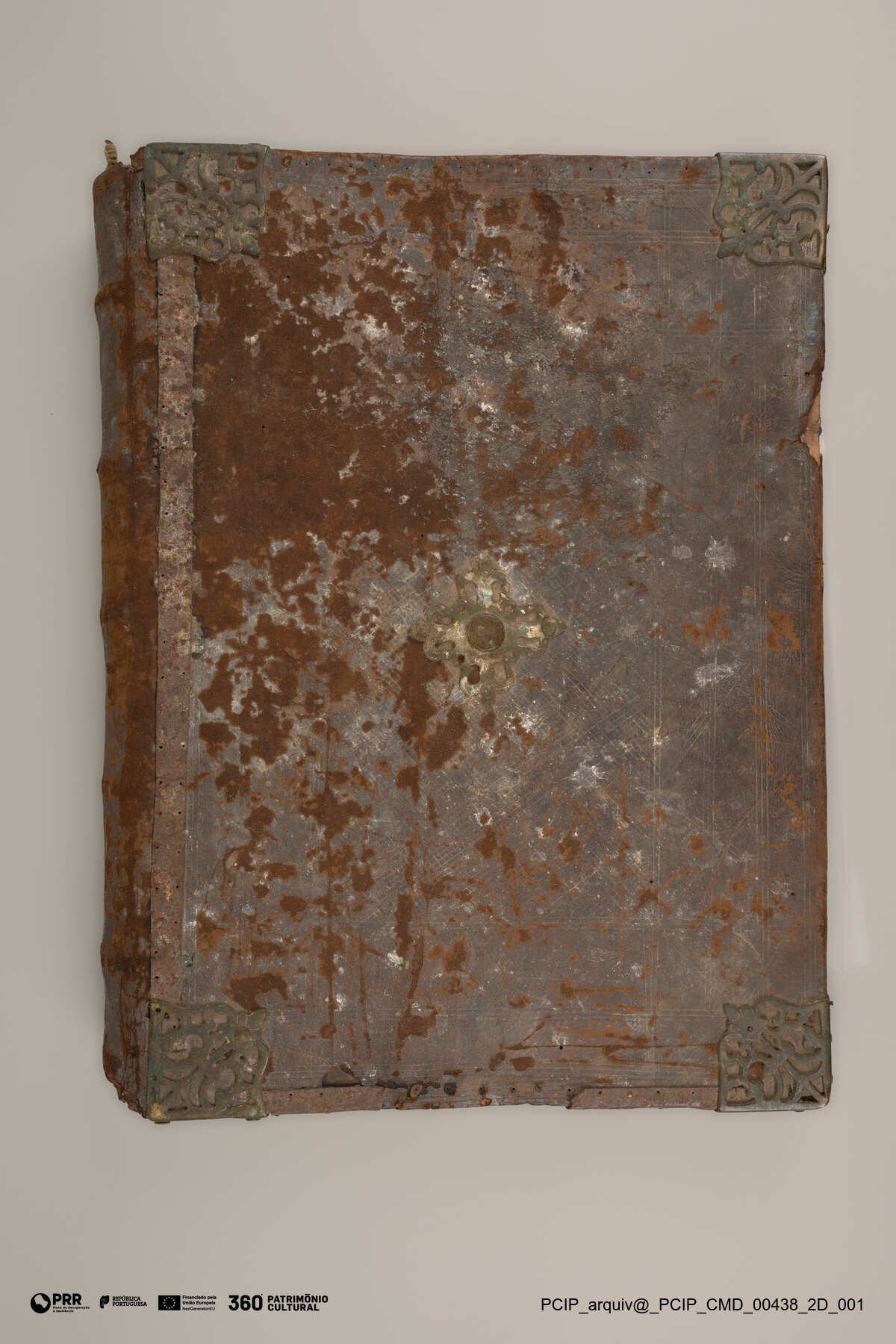 Matéria/Técnica: papel, madeira, pele animal e metal; Cronologia: 1620; Autoria: Diego de Bruceña; Susana Muñoz; Dimensões: Altura: 86 cm; Largura: 62 cm; Profundidade: 8,5 cm.