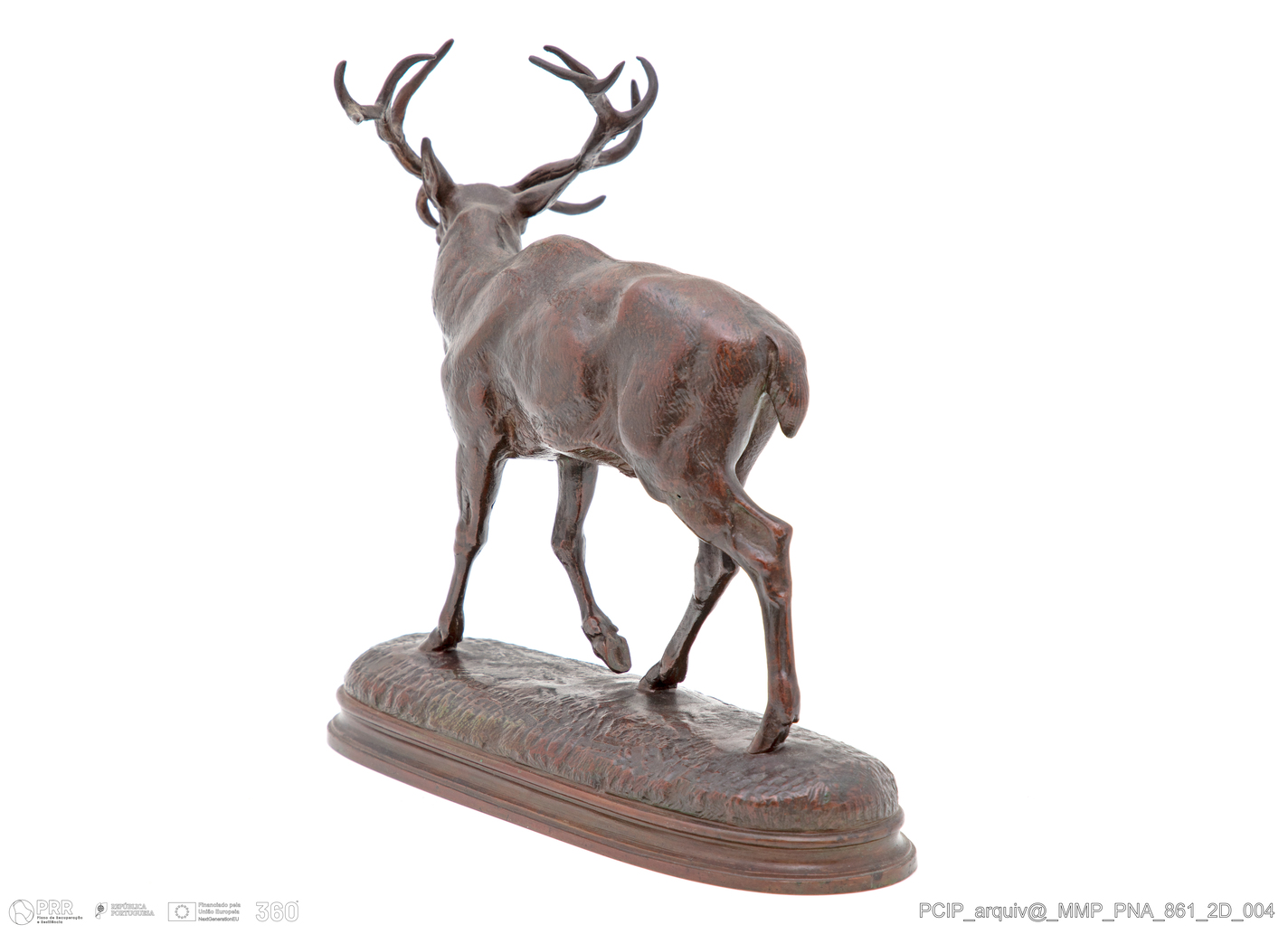Matéria/Técnica: Bronze; Cronologia: Século XIX; Autoria: Barye, Antoine-Louis (1795-1875); Dimensões (cm): Altura: 18,5; Largura: 22,5; Profundidade: 6,7.