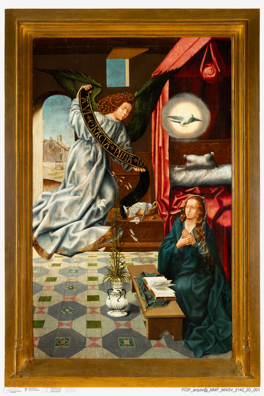 Matéria/Técnica: Pintura a óleo; Cronologia: 1501-1506; Autoria: Fernandes, Vasco; Henriques, Francisco (act.1500-1518); Dimensões: Altura: 131 cm x Largura: 81 cm x Espessura: 2,45 cm.