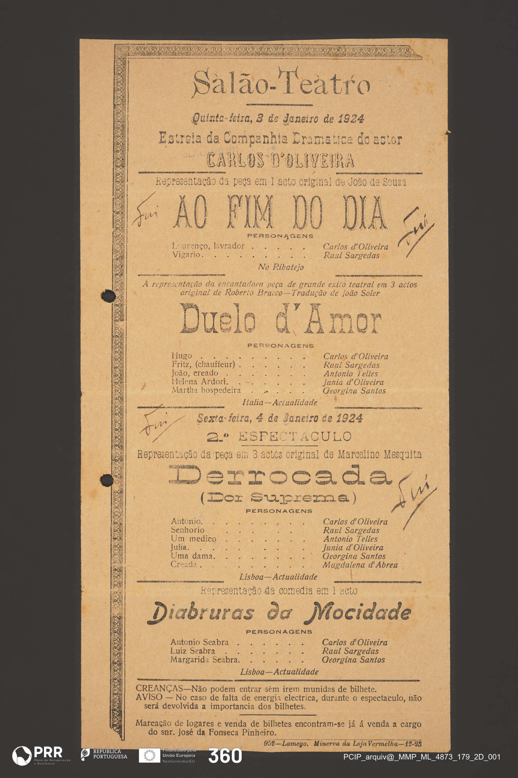 Documento simples. ML_4873_179_2D_001 - Ao fim do dia; Duelo d'Amor; Derrocada (Dor Suprema); Diabruras da Mocidade