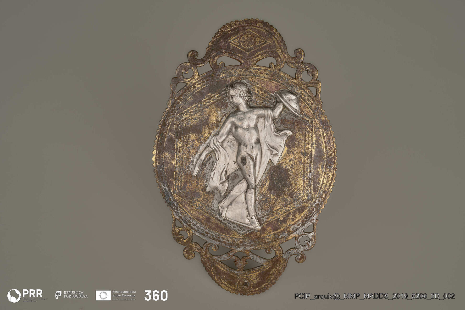 Matéria/Técnica: Bronze/Prata; Cronologia: Séc. I d.C; Autoria: Desconhecida; Dimensões (cm): 20 x 13 x 2,9.