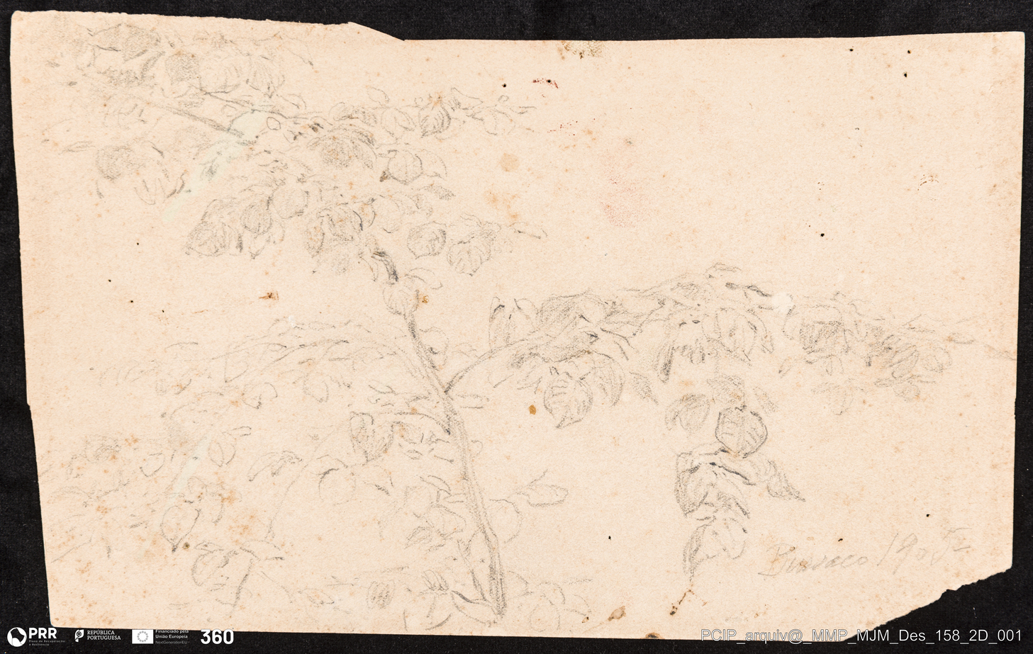Matéria/Técnica: Lápis sobre papel; Cronologia: 1905; Autoria: António Ramalho (1858-1916); Dimensões: 14,5 x23,7 cm.