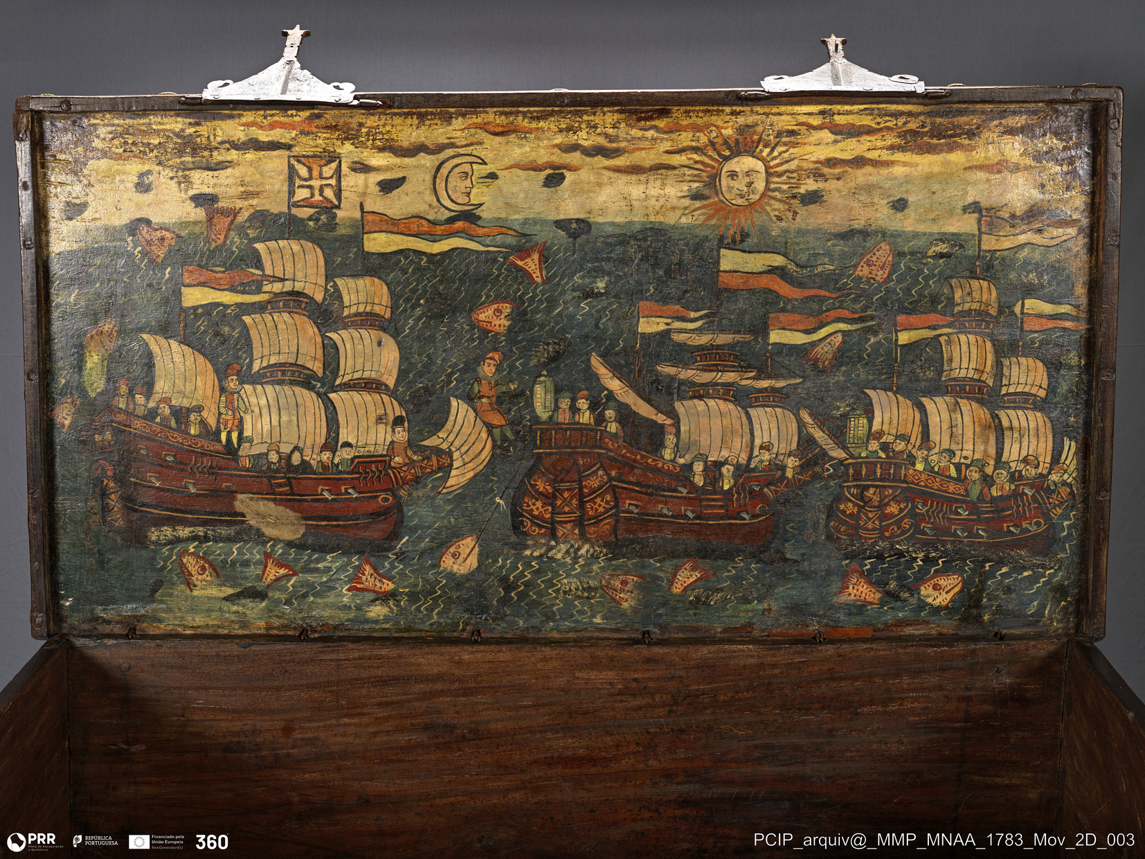 Matéria/Técnica: Madeira de angelim e ferro estanhado; interior pintado; Cronologia: 1590-1620; Autoria: Desconhecida; Dimensões (cm): Desconhecidas.