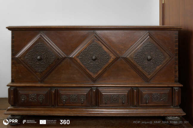 Matéria/Técnica: Desconhecida; Cronologia: Século XVII; Autoria: Desconhecida; Dimensões (cm): Altura: 76; Largura: 63; Comprimento: 136,5.