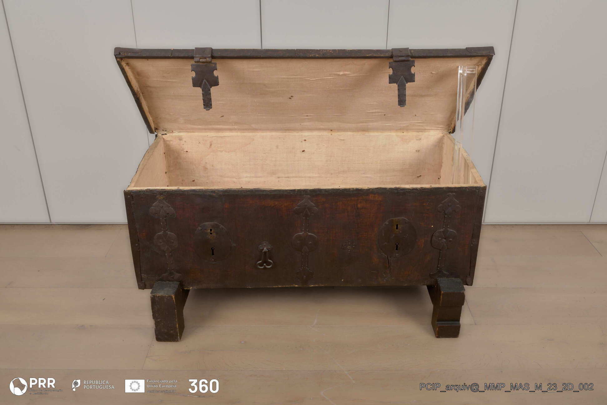 Matéria/Técnica: Desconhecida; Cronologia: Século XVII; Autoria: Desconhecida; Dimensões: Altura: 55,5 cm x Largura: 65,5 cm x Comprimento: 118 cm.