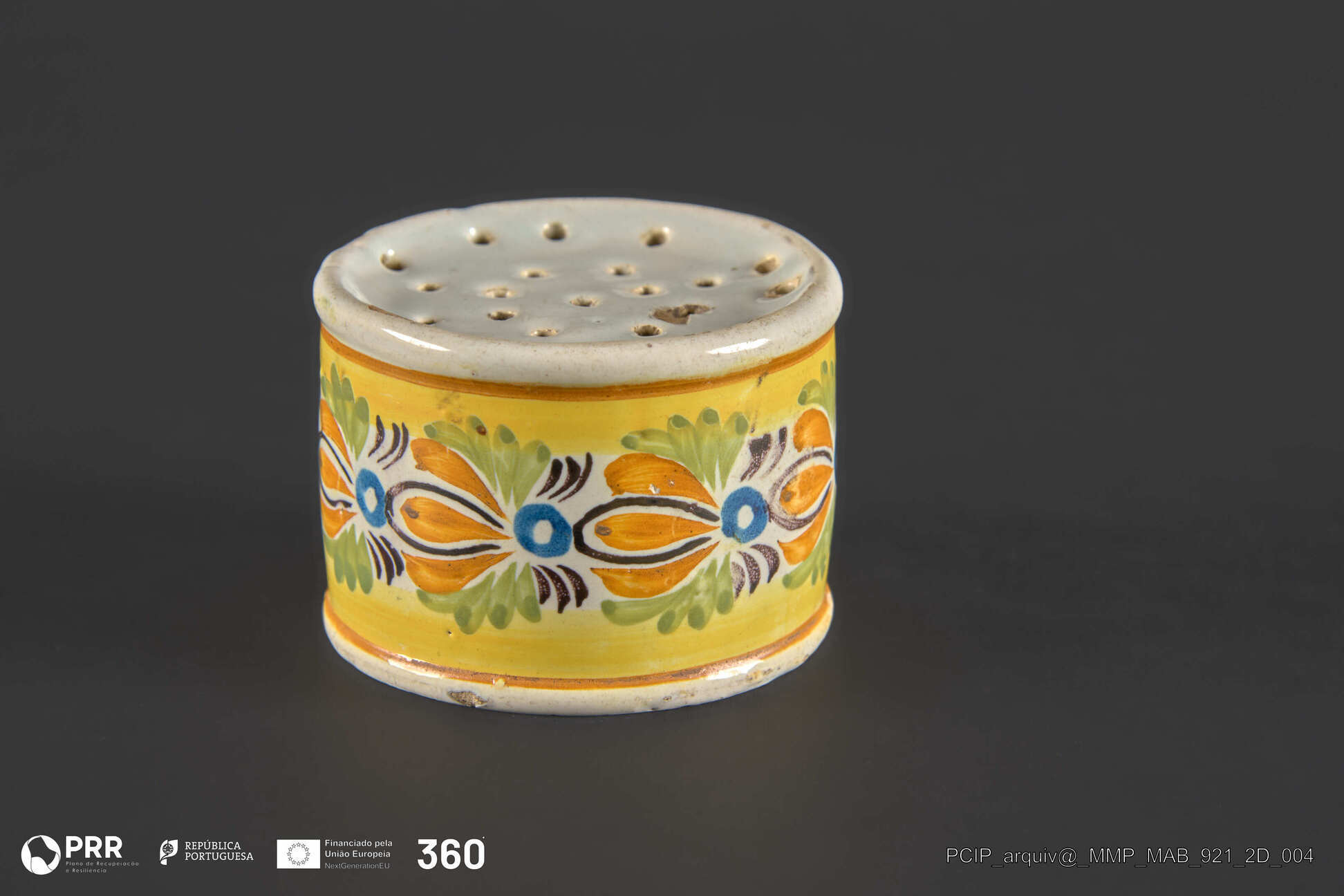 Matéria/Técnica: Peça policroma, moldada e vidrada; Cronologia: Desconhecida; Autoria: Desconhecida; Dimensões: Desconhecidas.