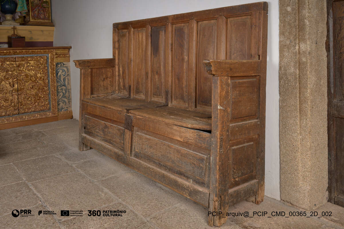 Matéria/Técnica: Madeira; Cronologia: XVII; Autoria: Desconhecida; Dimensões: Altura: 124 cm; Largura: 185 cm; Profundidade: 49 cm.
