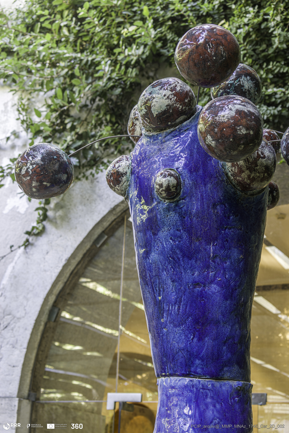 Matéria/Técnica: Grés vidrado c/esferas de selénio e arame de latão; Cronologia: 2022; Autoria: A.Vasconcelos Lapa; Dimensões: Altura: 2,10 cm x Largura: 40 cm.