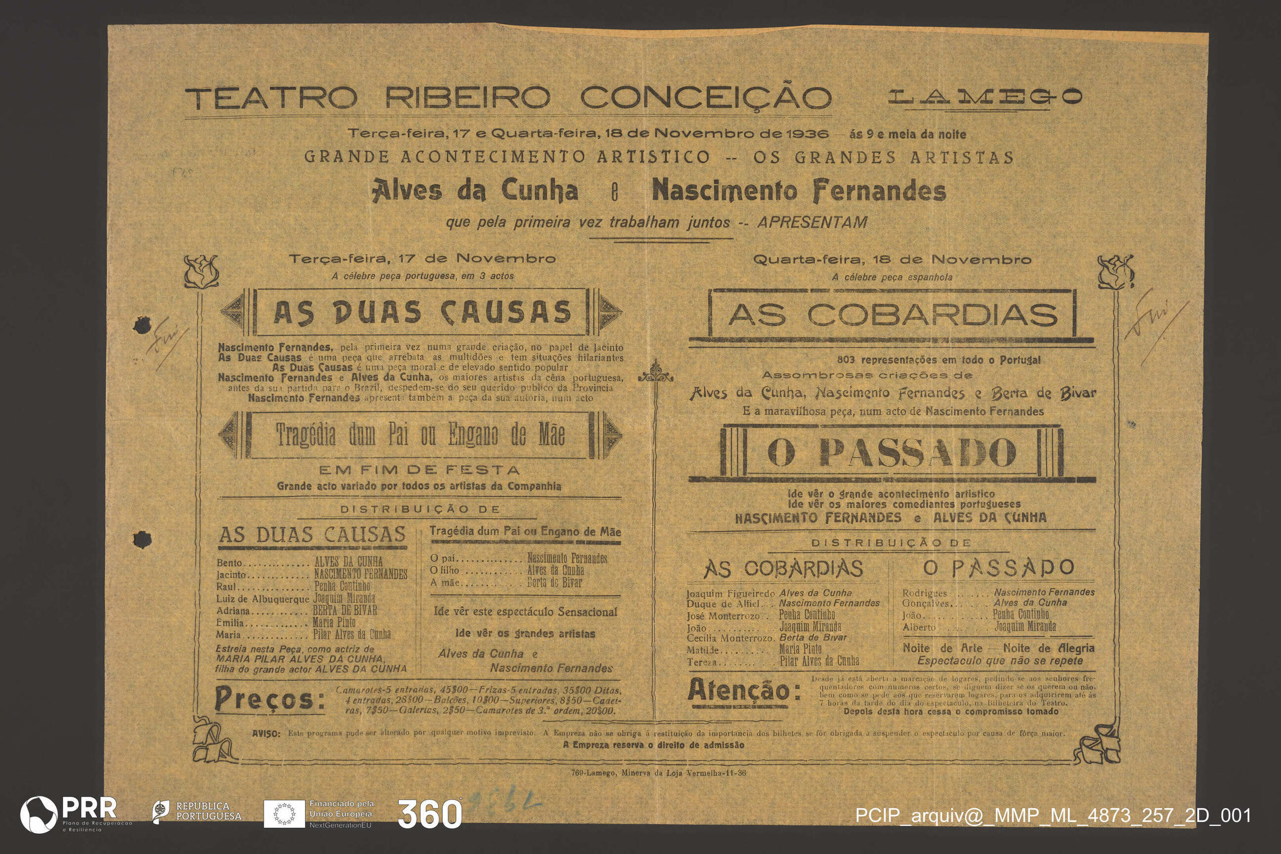 As duas causas; Tragédia dum Pai ou Engano de Mãe; As Cobardias; O Passado