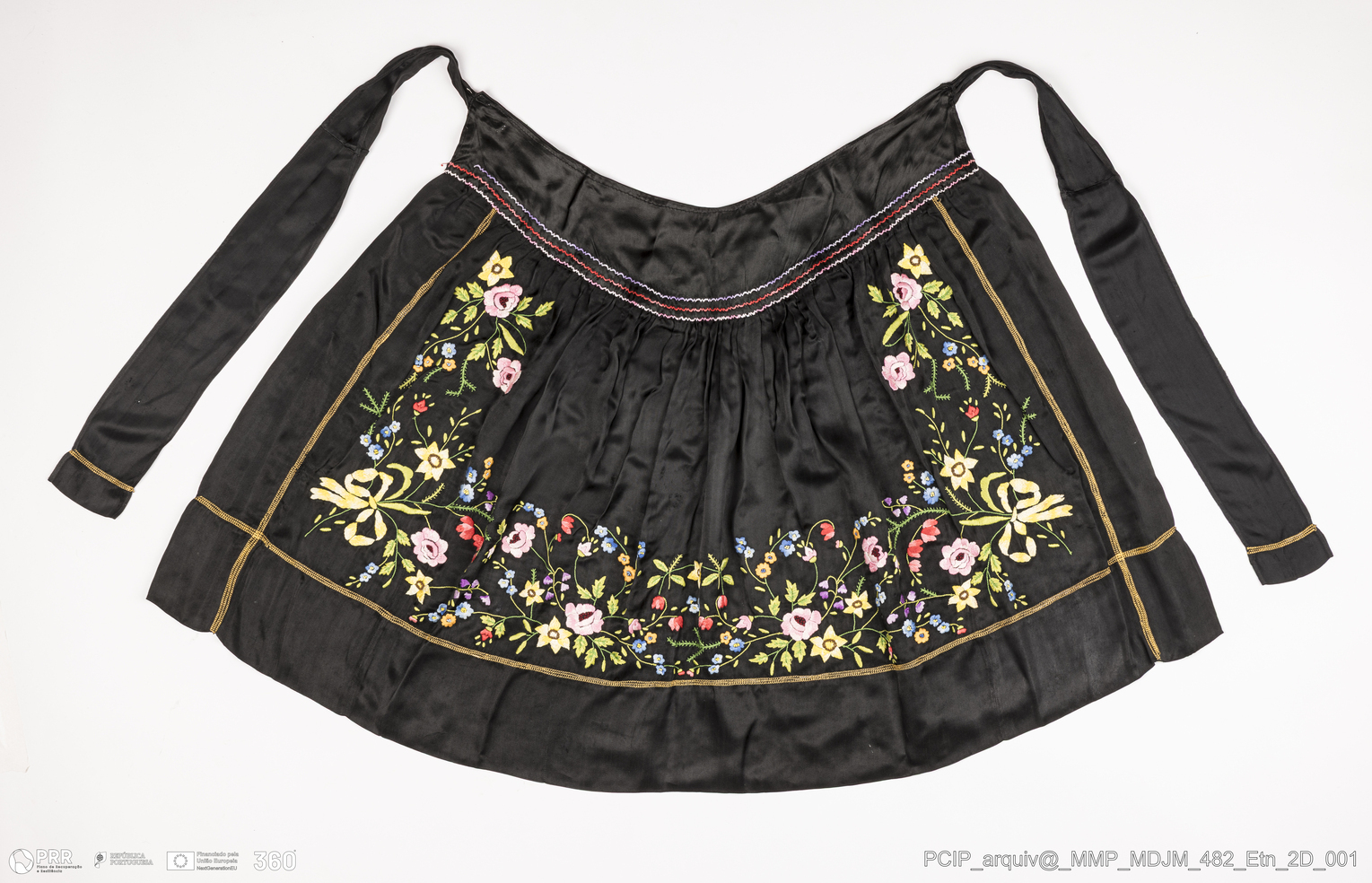 Matéria/Técnica: Seda preta; Cronologia: Séc. XX; Autoria: Desconhecida; Dimensões: Altura: 62,5 cm x Largura: 123 cm.