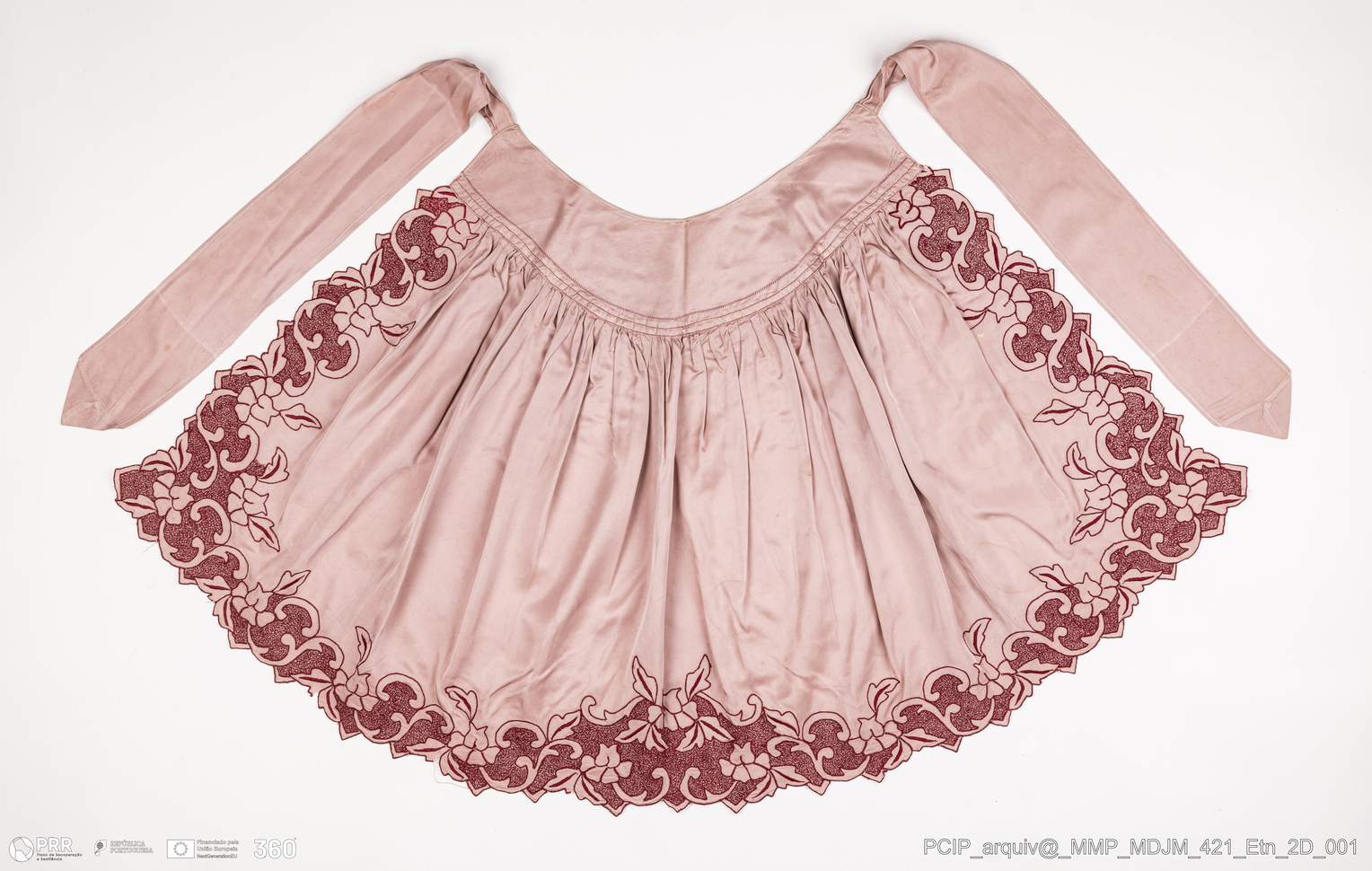Matéria/Técnica: Cetim; Cronologia: Séc. XX; Autoria: Desconhecida; Dimensões: Altura: 62 cm x Largura: 144 cm.