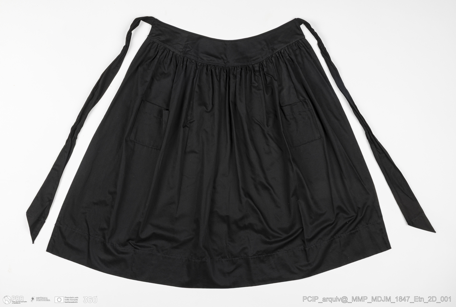 Matéria/Técnica: Algodão (merino) preto; Cronologia: Séc. XXI; Autoria: Maria Antónia Quinzico; Dimensões: Altura: 79 cm x Roda: 110 cm.