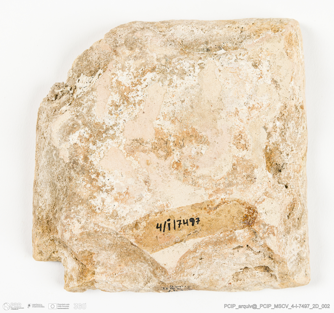 Matéria/Técnica: Cerâmica de revestimento; Cronologia: Século XVI; Autoria: Desconhecida; Dimensões: Comprimento: 133mm; Largura: 133mm; Espessura: 20mm.