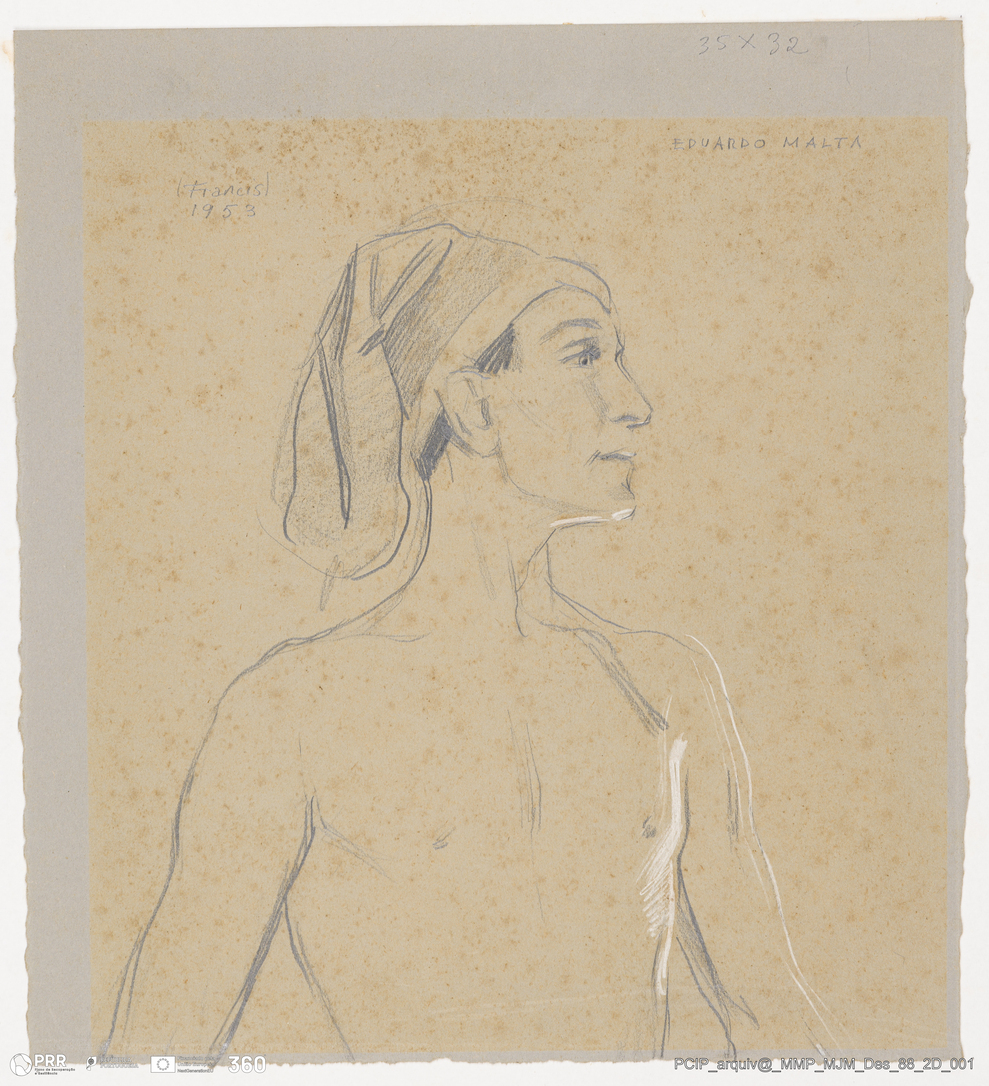 Matéria/Técnica: Lápis sobre papel; Cronologia: 1953; Autoria: Eduardo Malta; Dimensões: 35 x 22 cm.