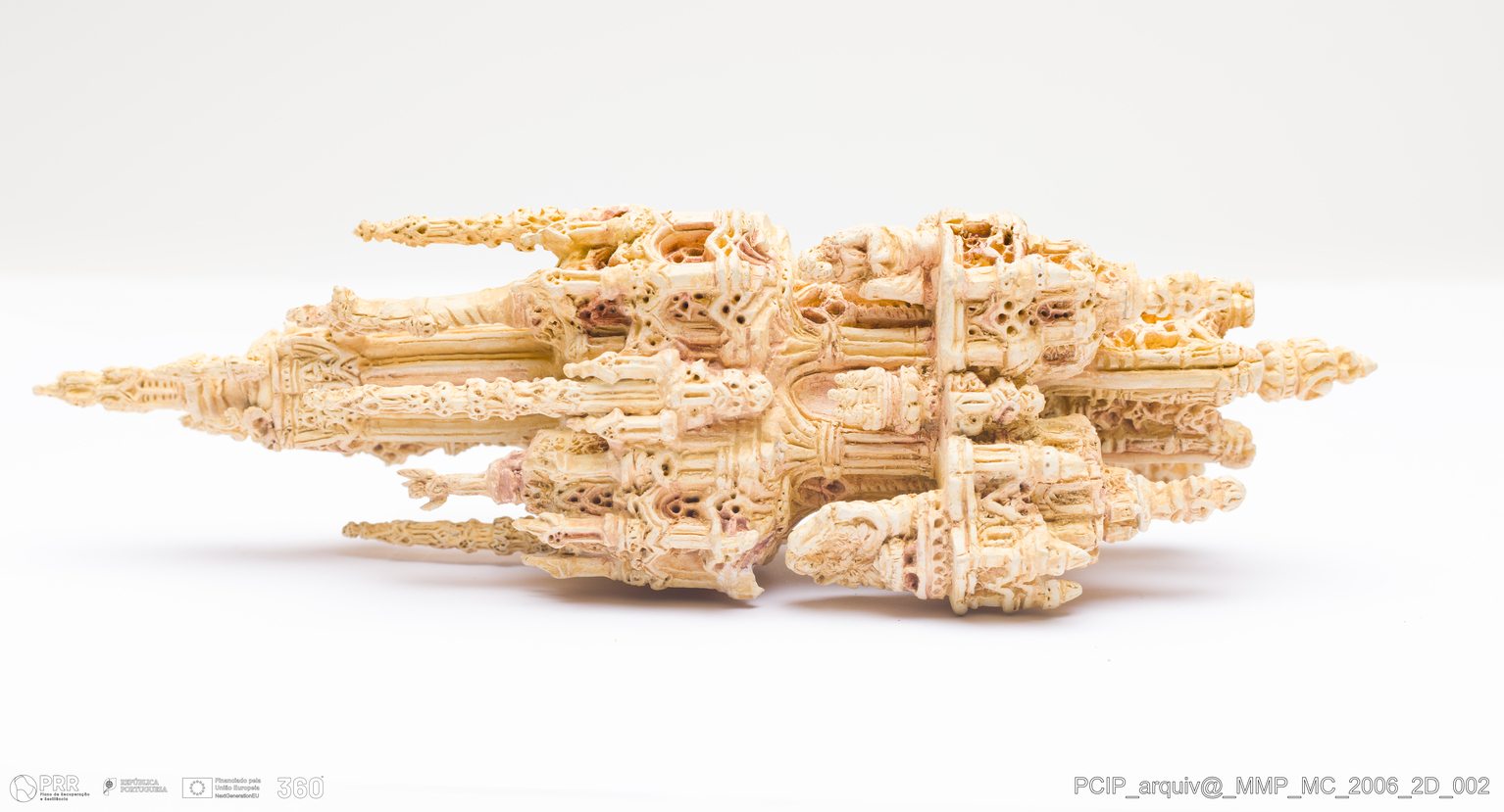 Matéria/Técnica: Barro branco modelado; Cronologia: 1970; Autoria: José da Silva Pedro / Sacavém, Portugal; Dimensões (cm): Altura: 21,5; Largura: 5,5.