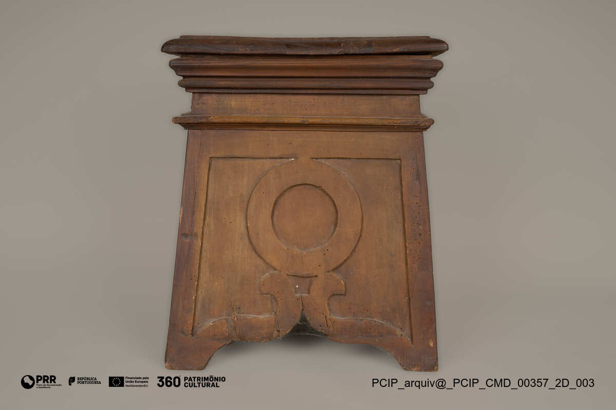 Matéria/Técnica: Madeira; Cronologia: XVIII; Autoria: Desconhecida; Dimensões: Altura: 54 cm; Largura: 45 cm; Profundidade: 36 cm.