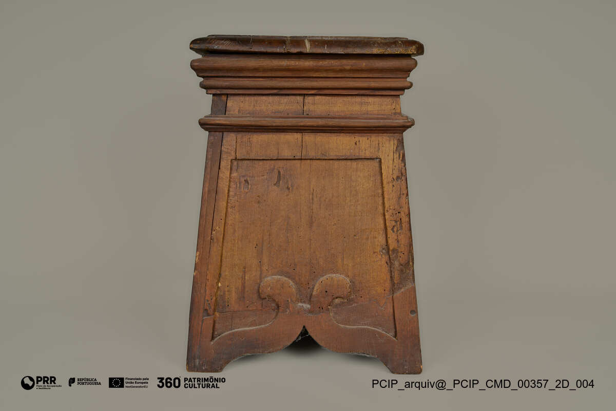 Matéria/Técnica: Madeira; Cronologia: XVIII; Autoria: Desconhecida; Dimensões: Altura: 54 cm; Largura: 45 cm; Profundidade: 36 cm.