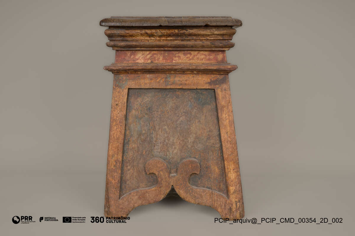 Matéria/Técnica: Madeira; Cronologia: XVIII; Autoria: Desconhecida; Dimensões: Altura: 54 cm; Largura: 45 cm; Profundidade: 36 cm.