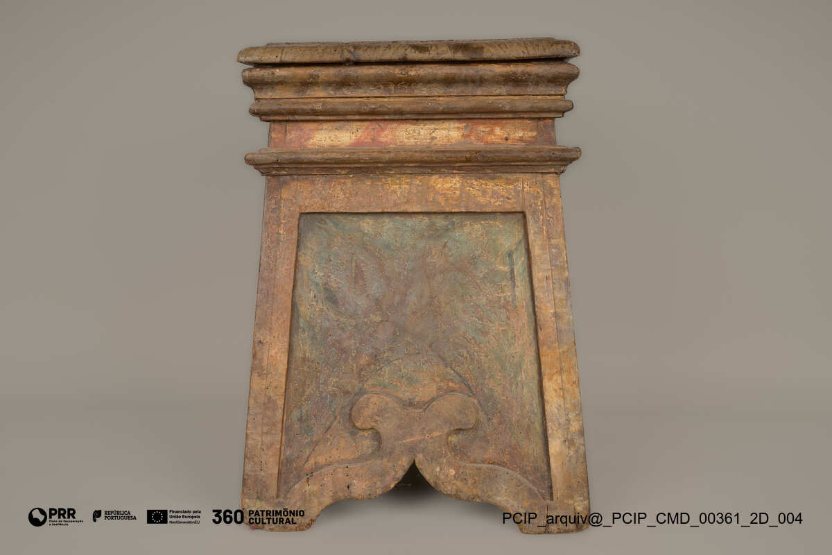 Matéria/Técnica: Madeira; Cronologia: XVIII; Autoria: Desconhecida; Dimensões: Altura: 54 cm; Largura: 45 cm; Profundidade: 36 cm.