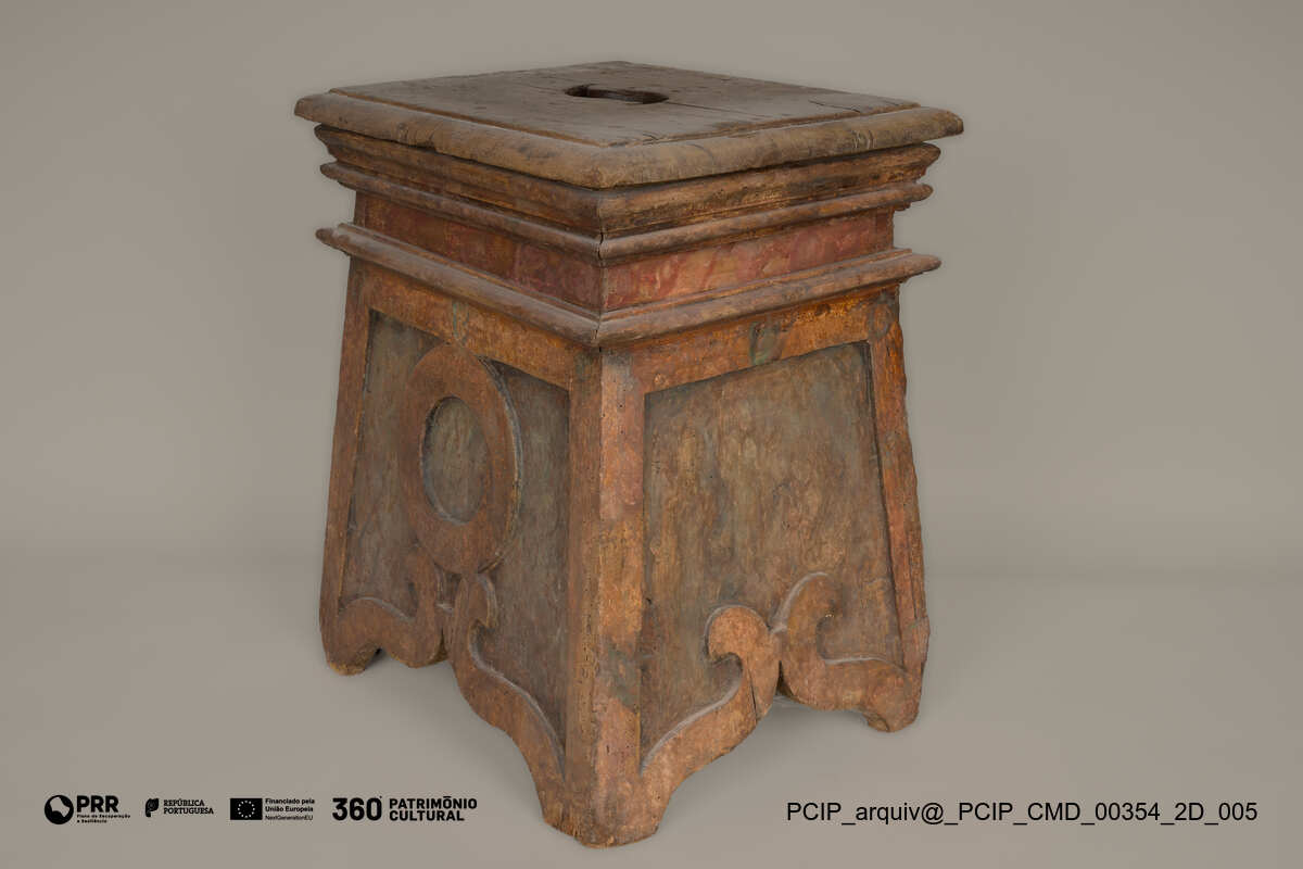 Matéria/Técnica: Madeira; Cronologia: XVIII; Autoria: Desconhecida; Dimensões: Altura: 54 cm; Largura: 45 cm; Profundidade: 36 cm.
