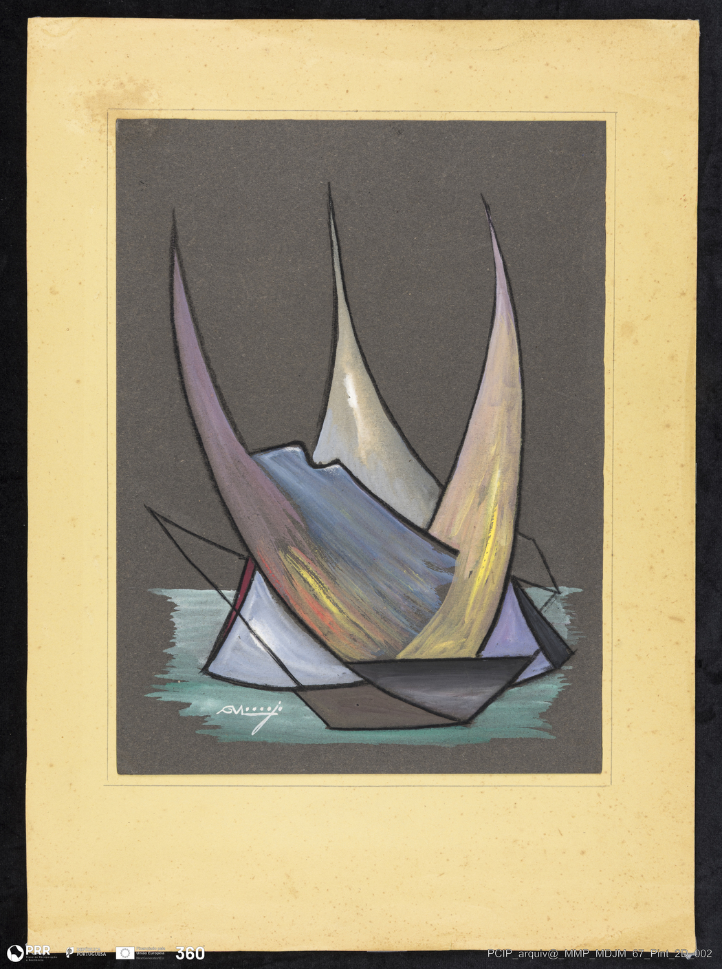 Matéria/Técnica: Gouache sobre papel; Cronologia: 1952; Autoria: António Vitorino Laranjo; Dimensões: Altura: 60 cm x Roda: 300 cm.