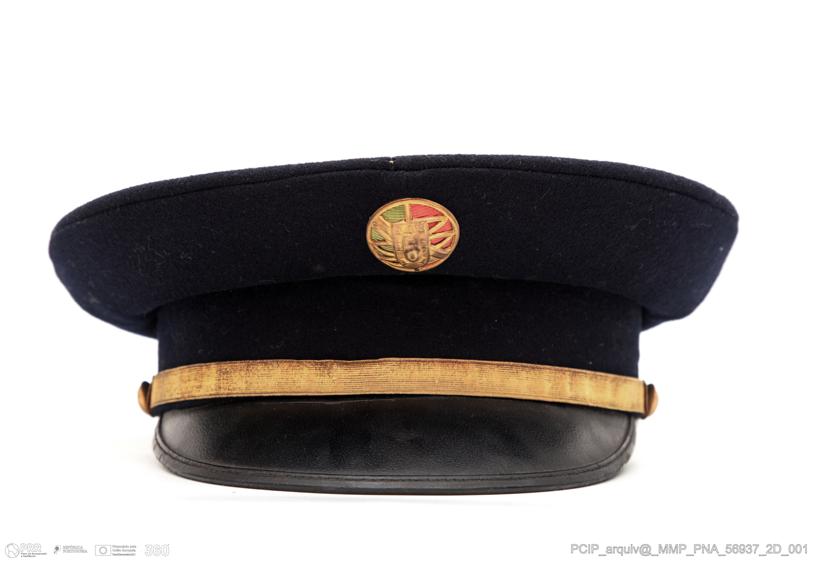 Matéria/Técnica: Lã; couro; metal dourado; algodão; Cronologia: Século XX; Autoria: Desconhecida; Dimensões (cm): Altura: 11; Largura: 27; Profundidade: 28.