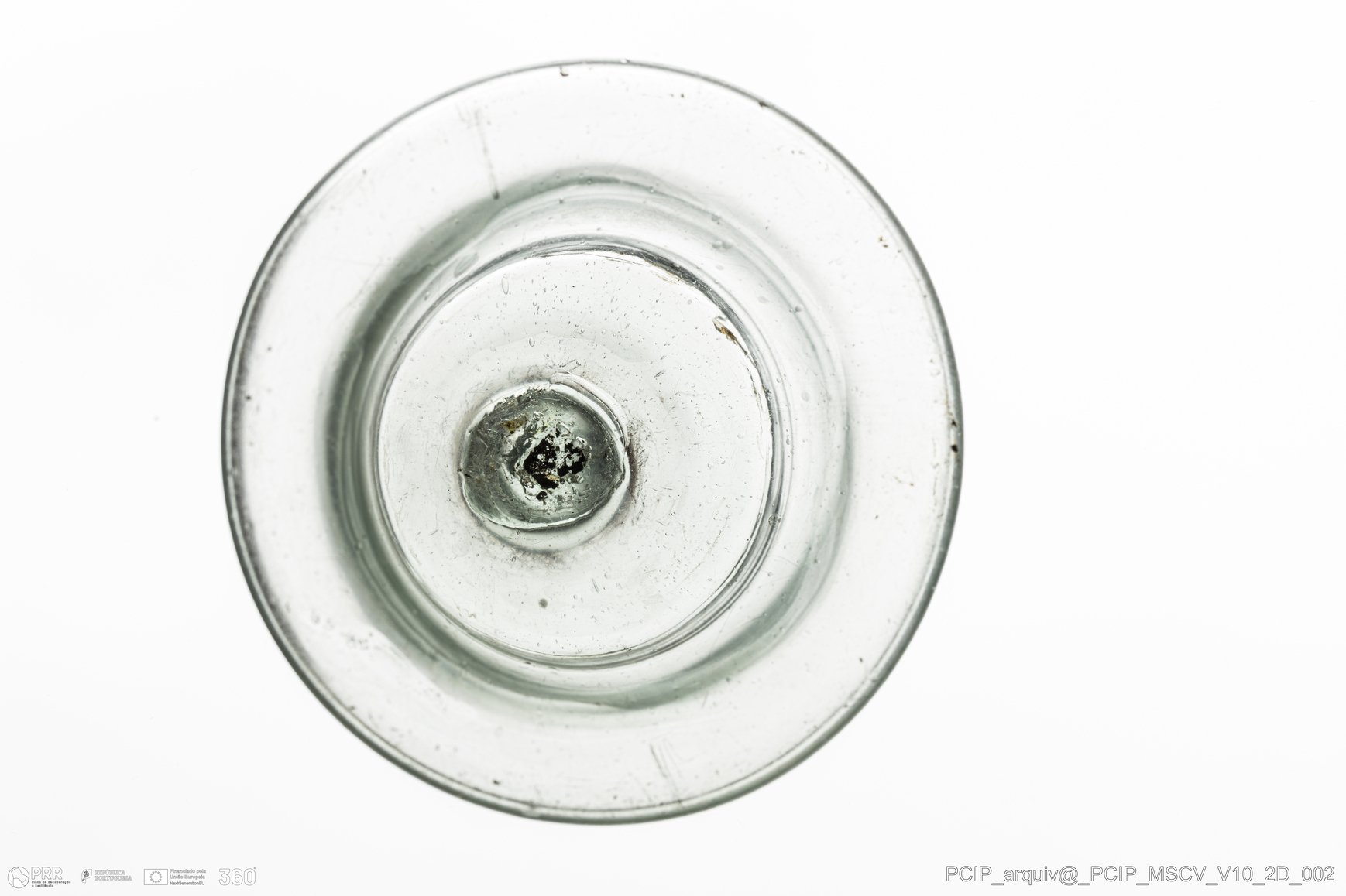 Matéria/Técnica: Vidro; Cronologia: Século XVII; Autoria: Desconhecida; Dimensões: Diâmetro base: 70mm.