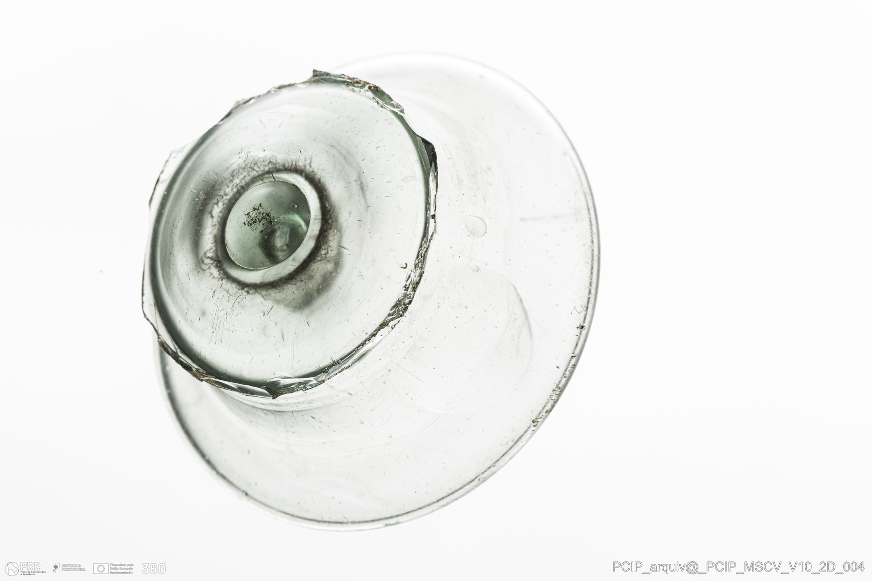 Matéria/Técnica: Vidro; Cronologia: Século XVII; Autoria: Desconhecida; Dimensões: Diâmetro base: 70mm.
