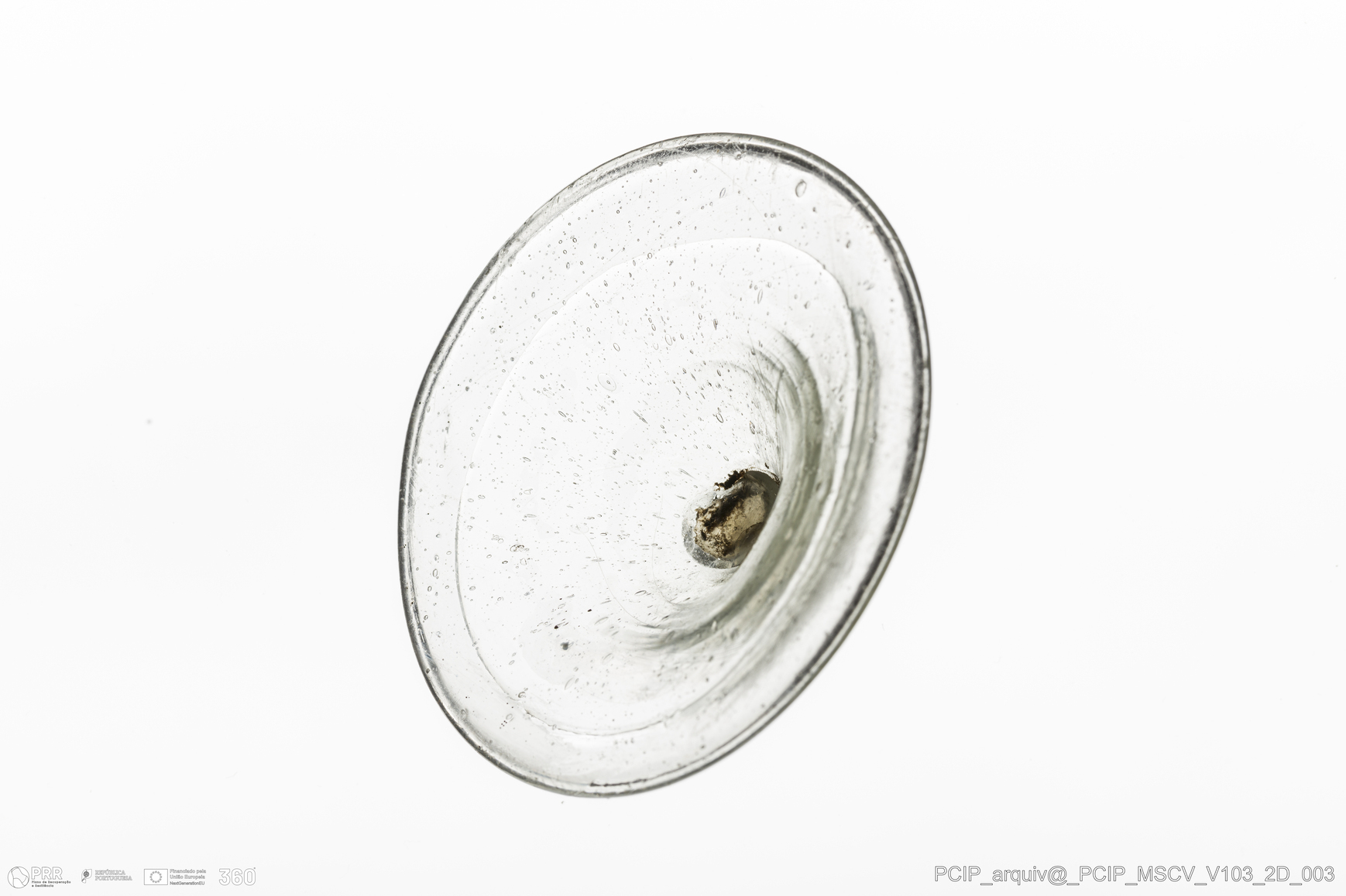 Matéria/Técnica: Vidro; Cronologia: Século XVII; Autoria: Desconhecida; Dimensões: Diâmetro base: 65mm.
