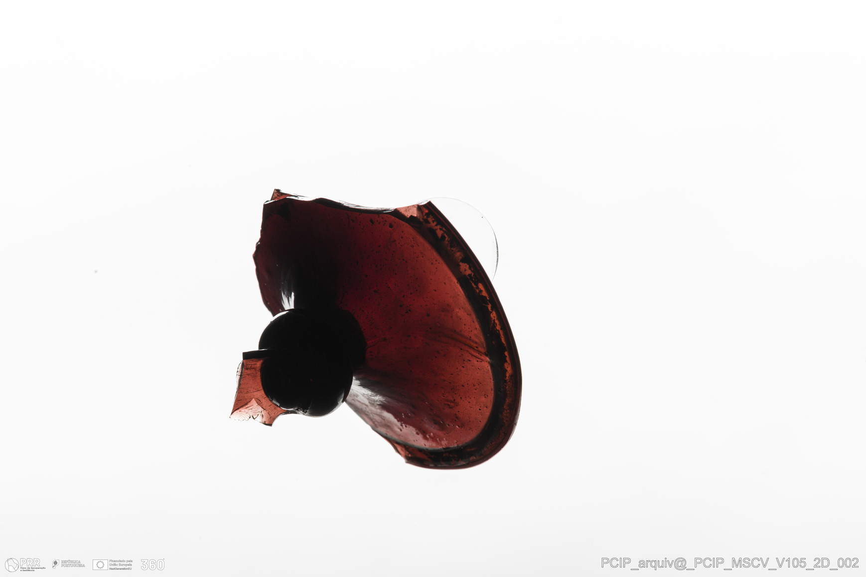 Matéria/Técnica: Vidro; Cronologia: Século XVII; Autoria: Desconhecida; Dimensões: Diâmetro base: 70mm.