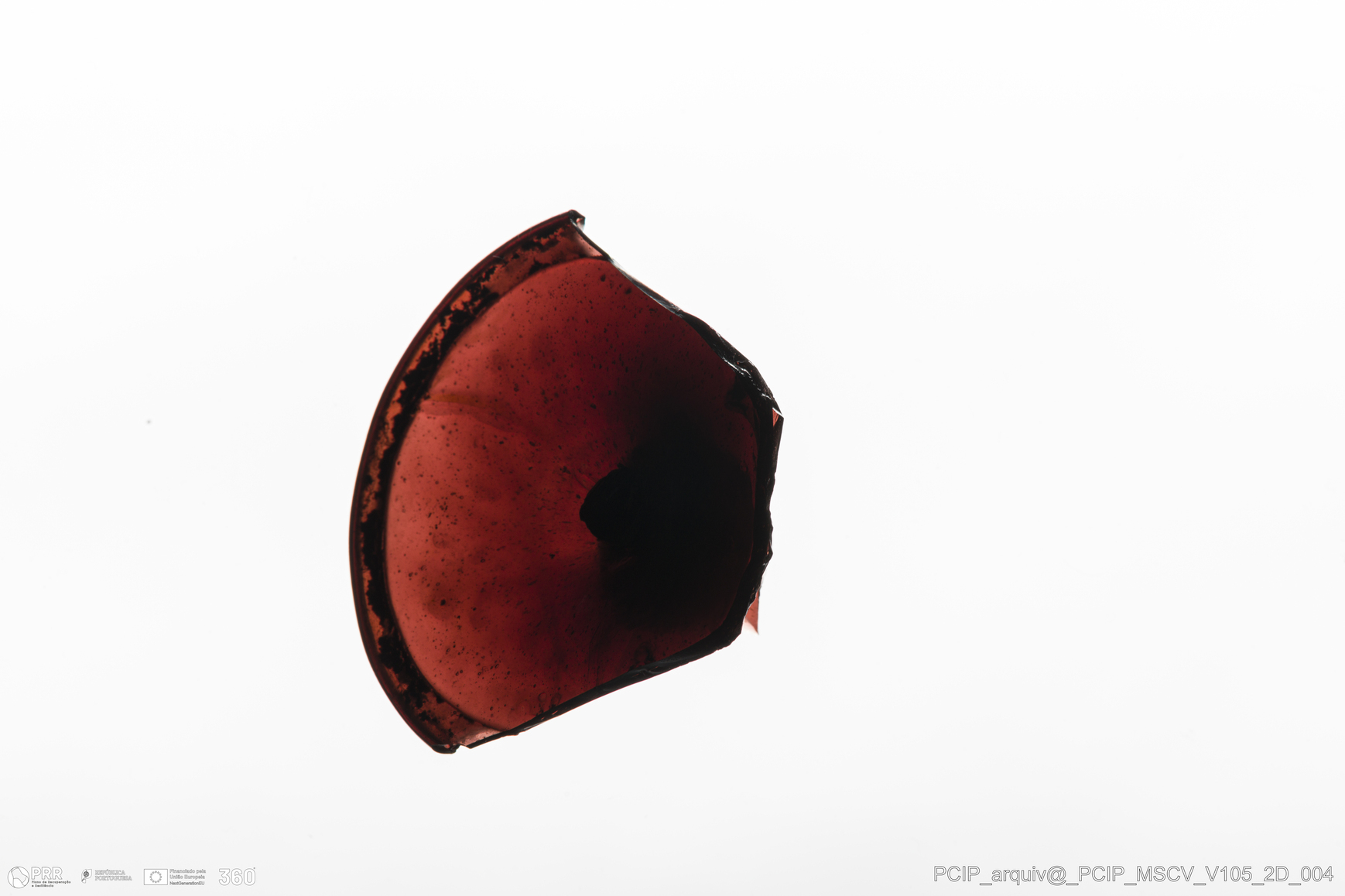 Matéria/Técnica: Vidro; Cronologia: Século XVII; Autoria: Desconhecida; Dimensões: Diâmetro base: 70mm.