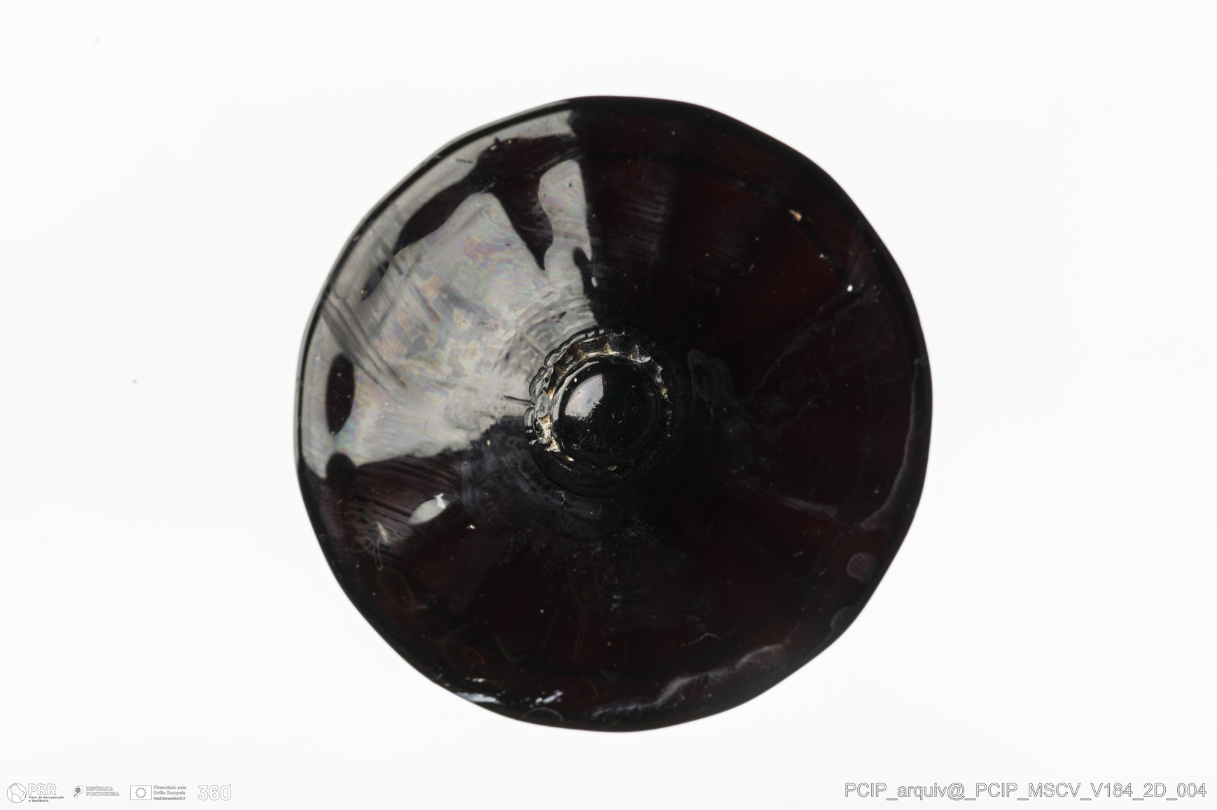 Matéria/Técnica: Vidro; Cronologia: Século XVII; Autoria: Desconhecida; Dimensões: Diâmetro base: 63mm.