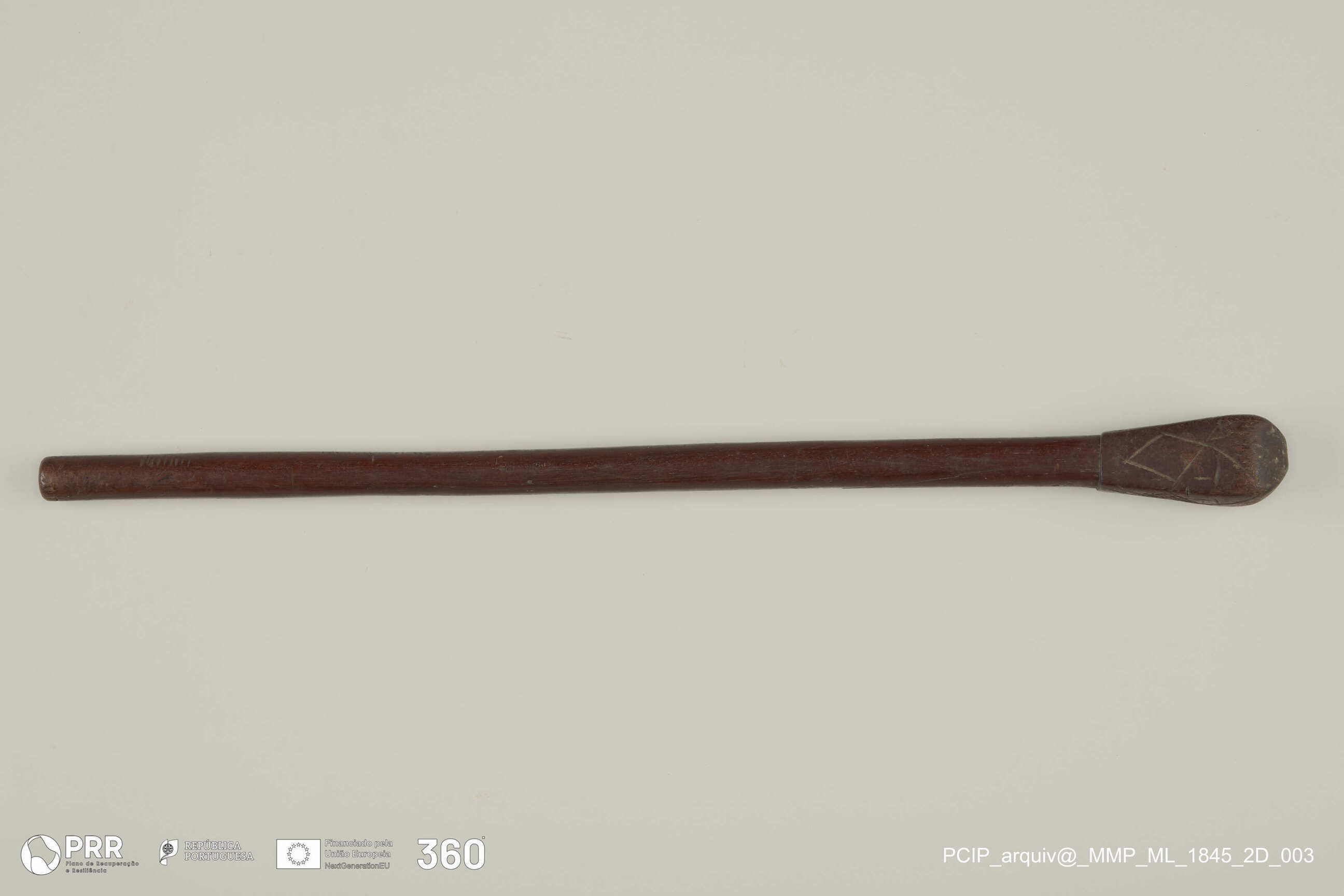 Matéria/Técnica: Decoração incisa; Cronologia: Século XIX; Autoria: Desconhecida; Dimensões (cm): Diâmetro: 3,7 x Comprimento: 49,2.