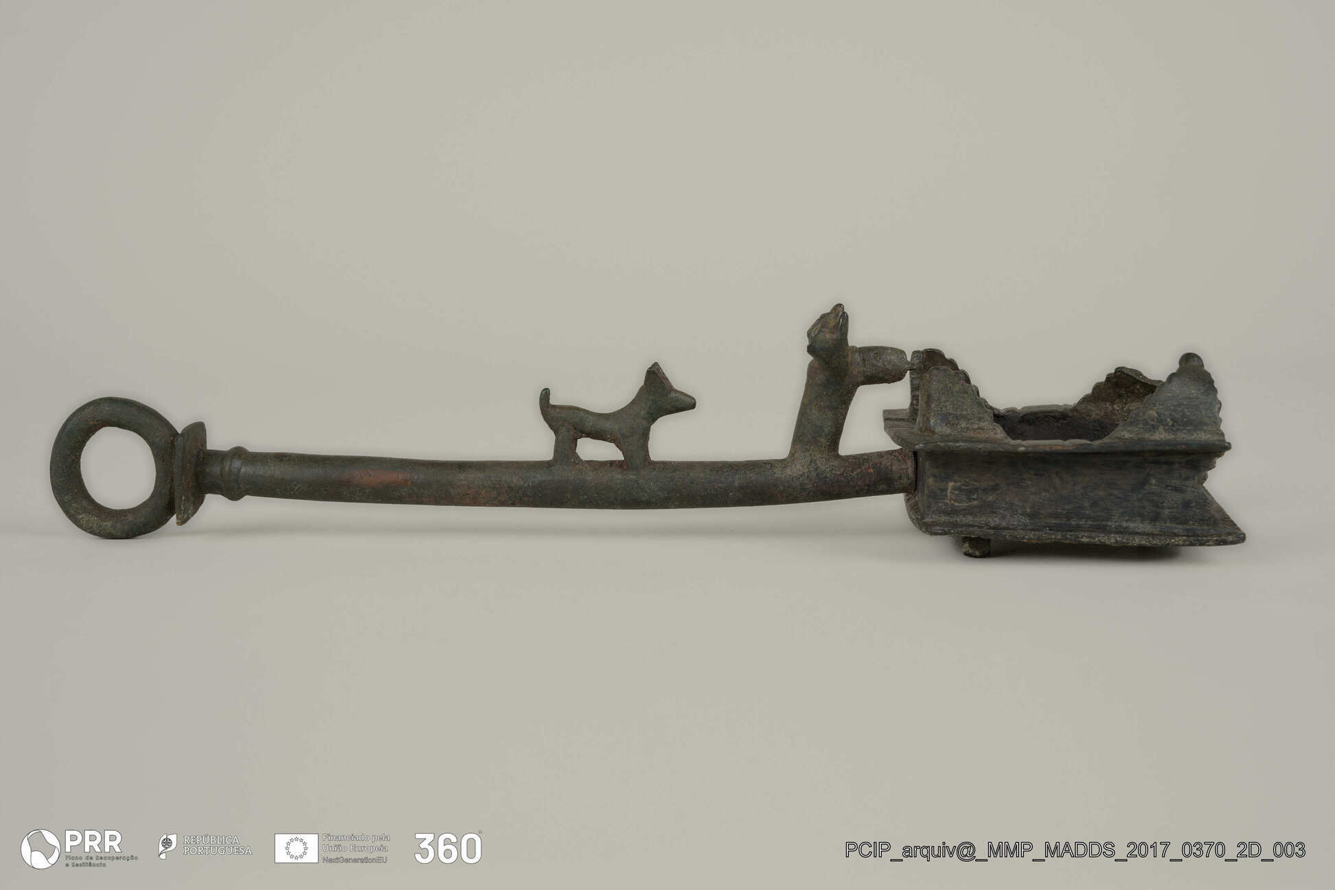 Matéria/Técnica: Bronze; Cronologia: Século II - III d.C; Autoria: Desconhecida; Dimensões (cm): 7 x 31 x 7.