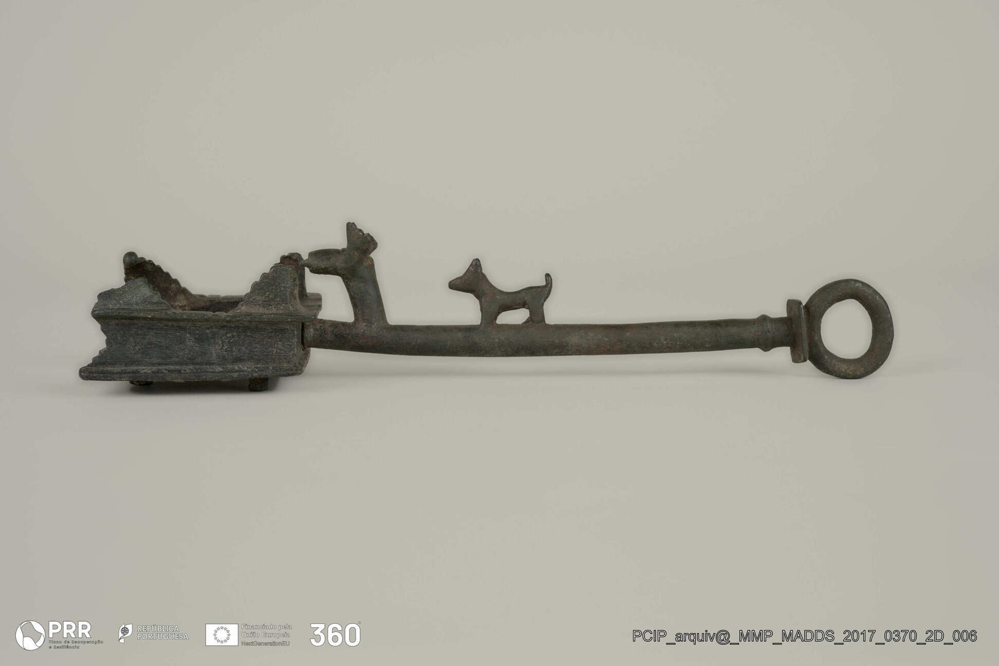Matéria/Técnica: Bronze; Cronologia: Século II - III d.C; Autoria: Desconhecida; Dimensões (cm): 7 x 31 x 7.