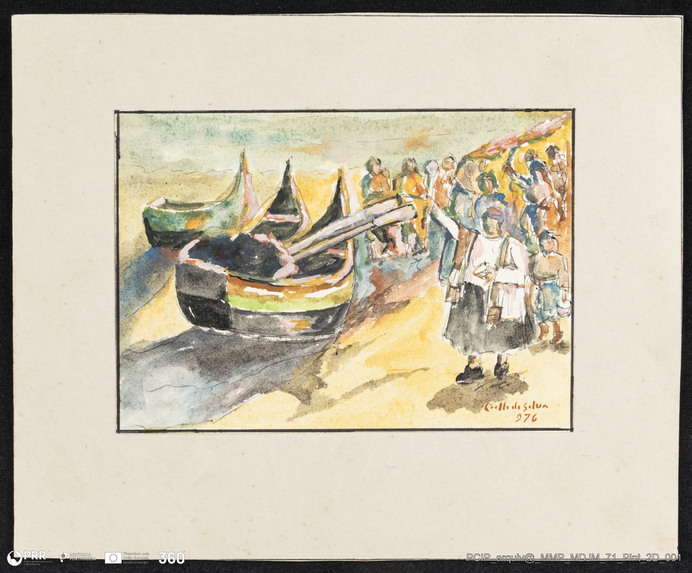 Matéria/Técnica: Aguarela sobre papel; Cronologia: 1976; Autoria: Manuel Coelho da Silva; Dimensões: Altura: 49,7 cm x Largura: 24 cm.