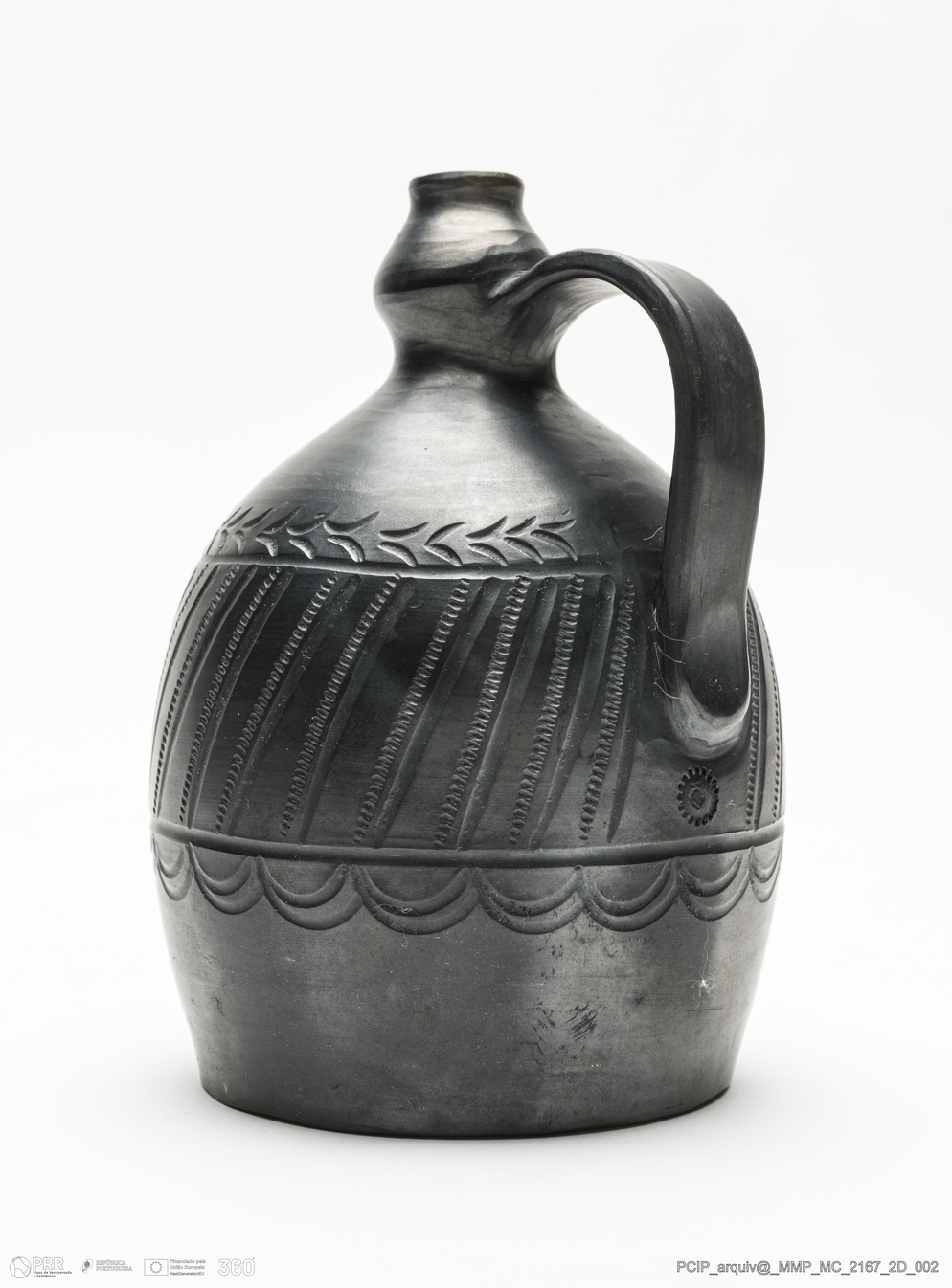 Matéria/Técnica: Barro negro rodado e moldado; Cronologia: 1991; Autoria: Mané. Beira Alta; Dimensões (cm): Altura: 14; Diâmetro: 14.