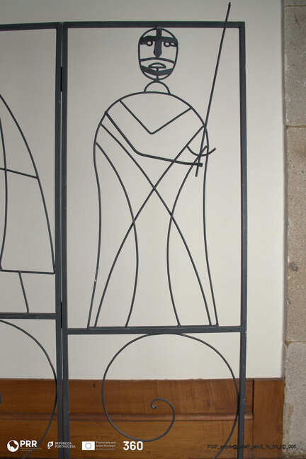 Matéria/Técnica: Ferro forjado; Cronologia: 2000; Autoria: Carreira, Gaspar; Dimensões (cm): Altura: 184,3; Largura: 231; Profundidade: 16.