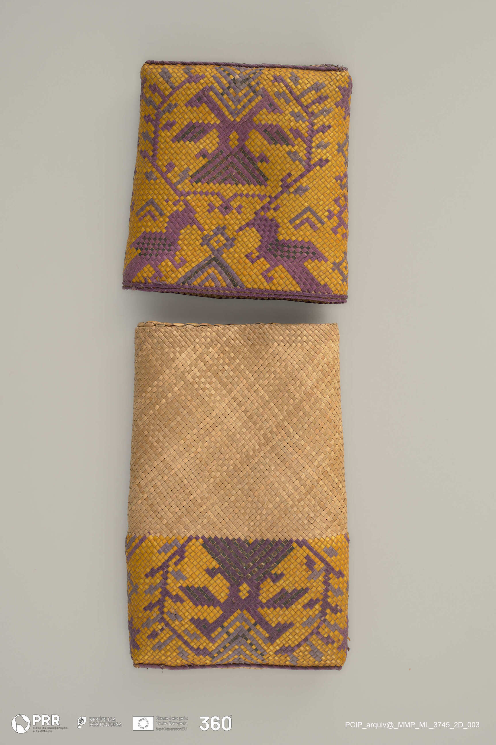Matéria/Técnica: Cestaria - entrecruzado; Cronologia: Época contemporânea; Autoria: Desconhecida; Dimensões (cm): Altura: 14 x Largura: 8,5.