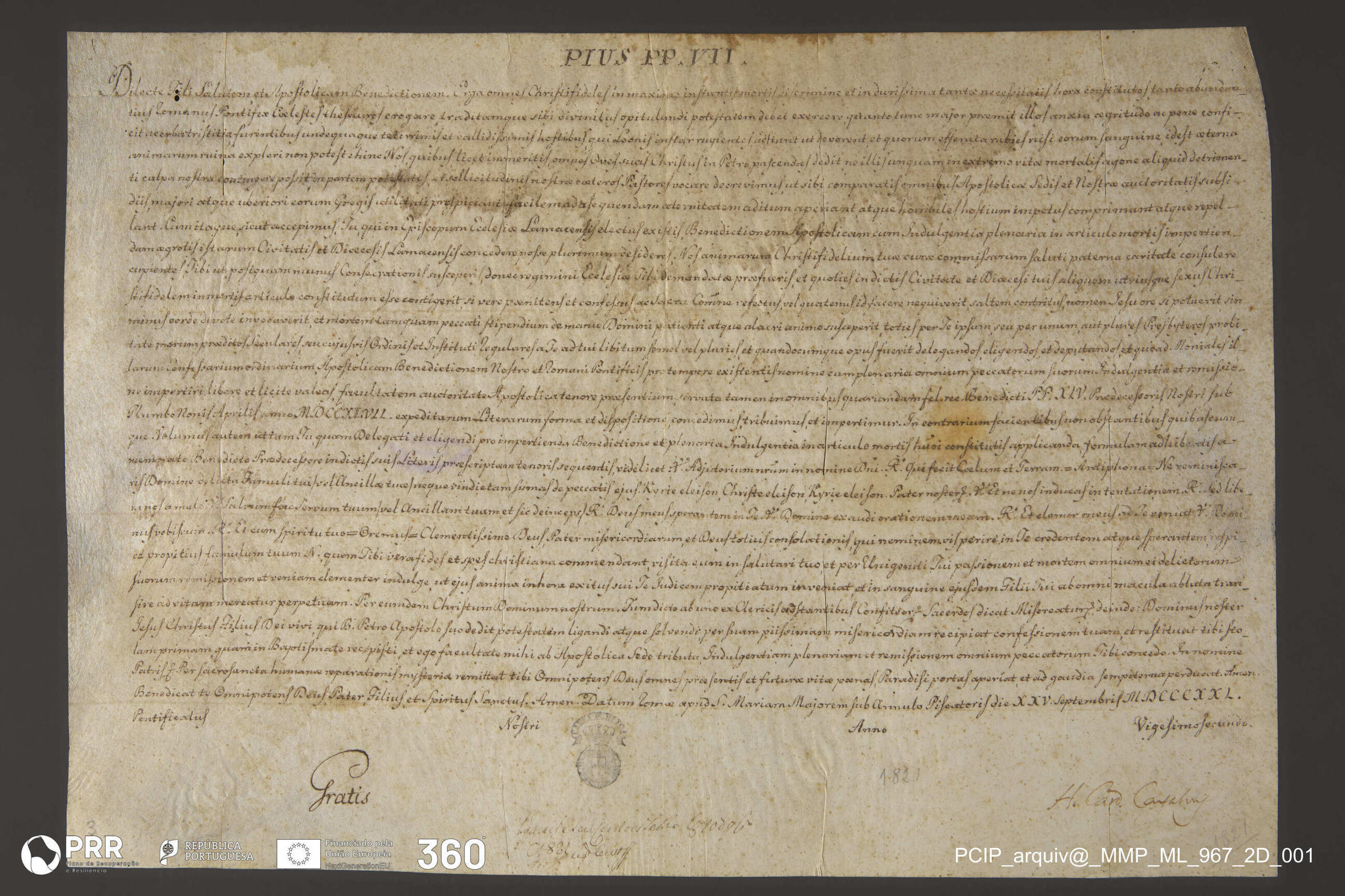 Matéria/Técnica: Escrito à pena em letra caligráfica moderna; Cronologia: 1821; Autoria: Desconhecida; Dimensões (cm): Altura: 34 x Largura: 48,5.