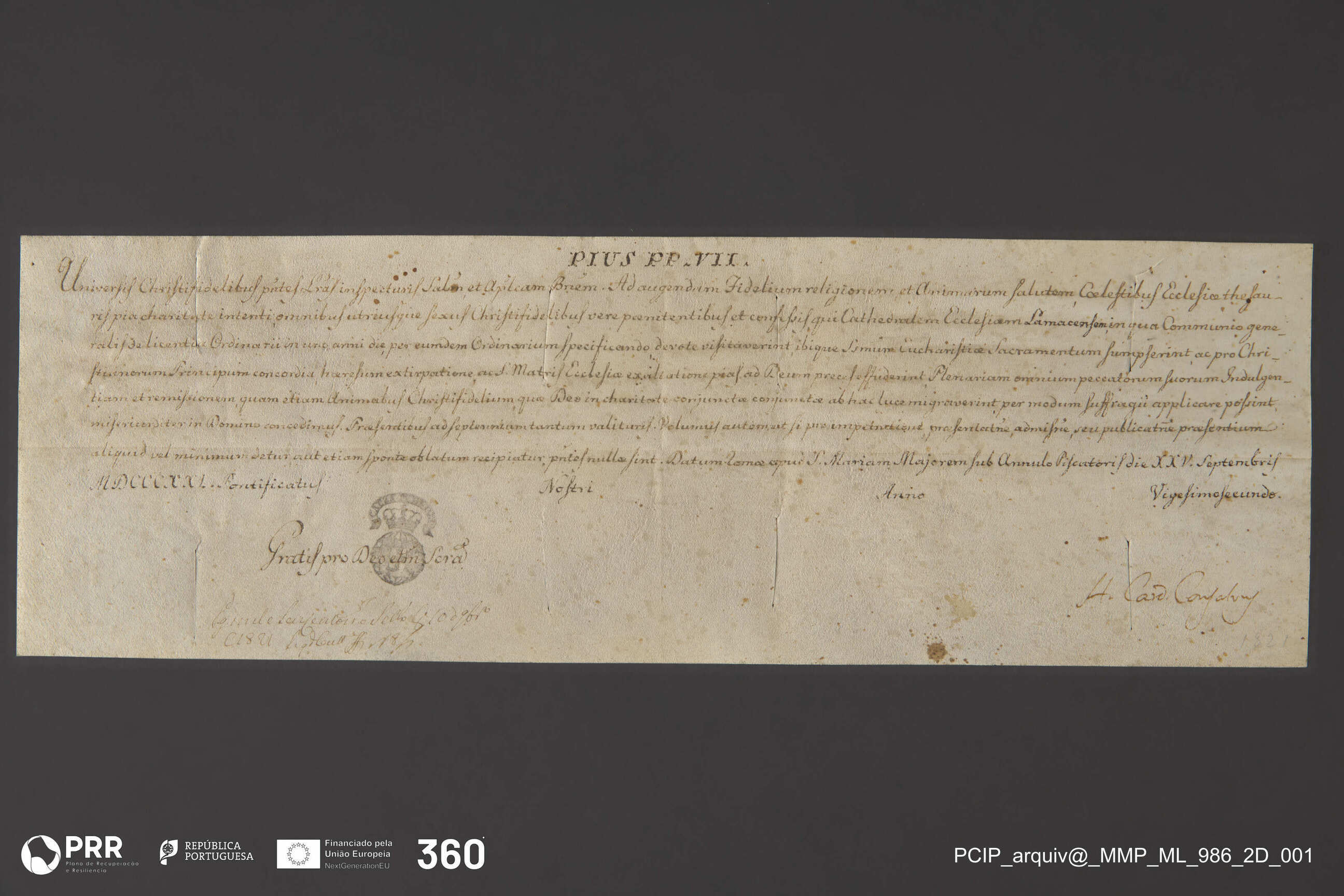 Matéria/Técnica: Escrito à pena em letra caligráfica moderna.; Cronologia: 1821; Autoria: Desconhecida; Dimensões (cm): Altura: 14 x Largura: 42,5.