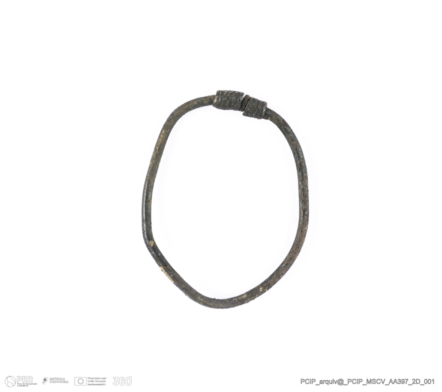 Matéria/Técnica: Metal; Cronologia: Século XVI- XVII; Autoria: Desconhecida; Dimensões: Comprimento: 20mm; Espessura: 2mm.