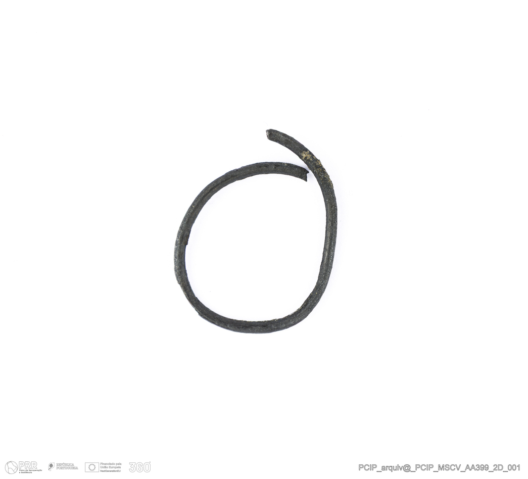 Matéria/Técnica: Metal; Cronologia: Século XVI- XVII; Autoria: Desconhecida; Dimensões: Comprimento: 18mm; Largura: 14mm; Espessura: 1mm.